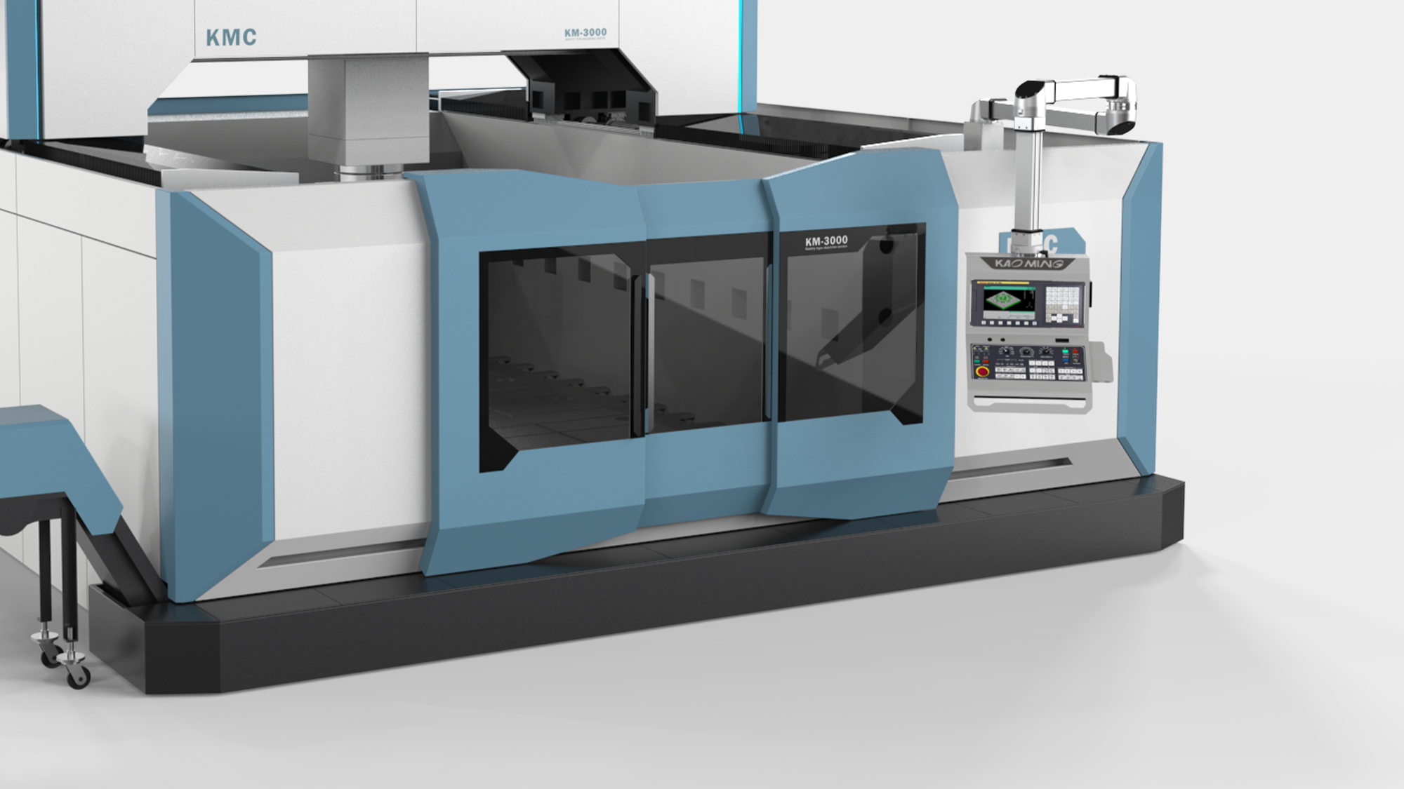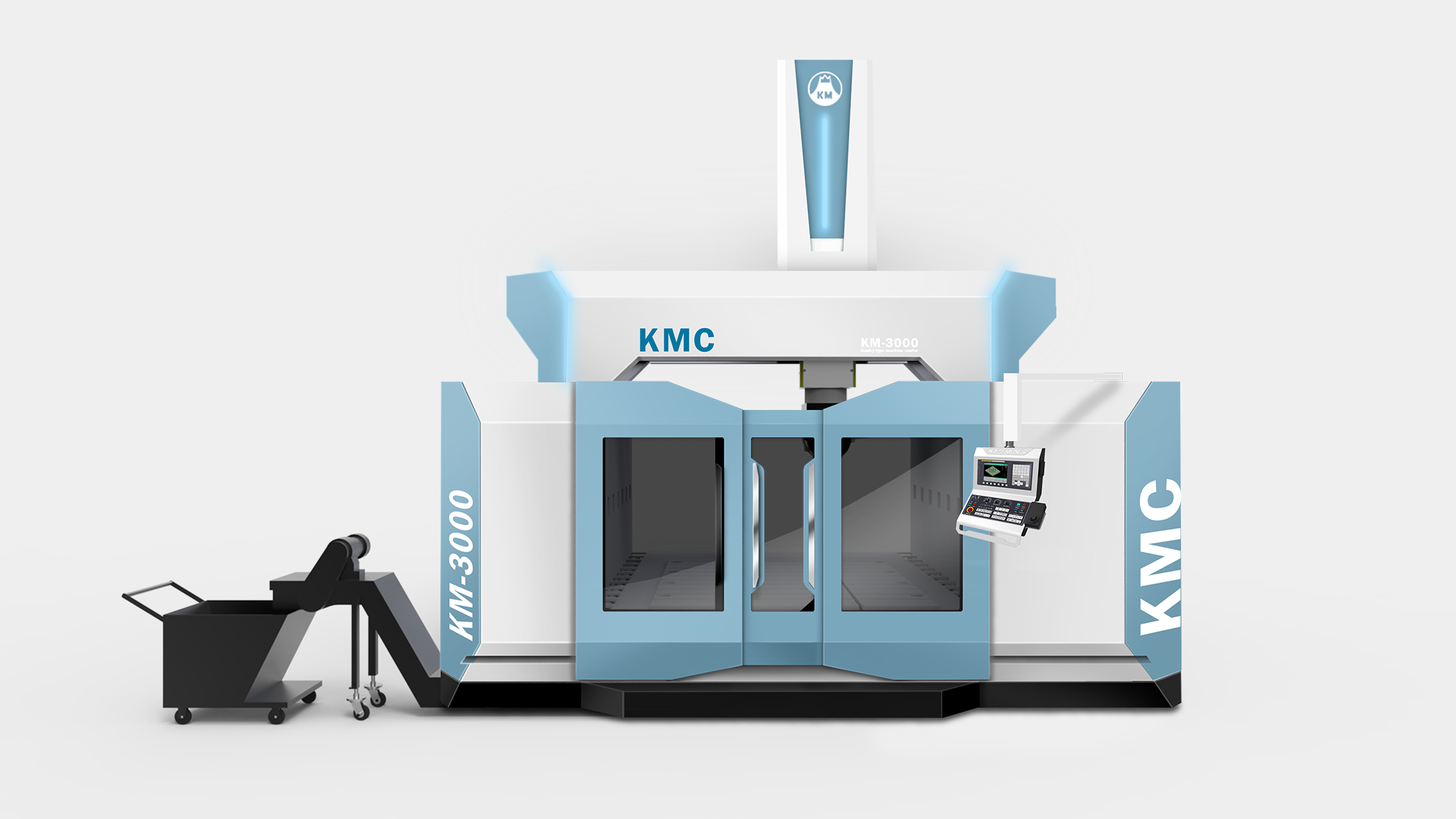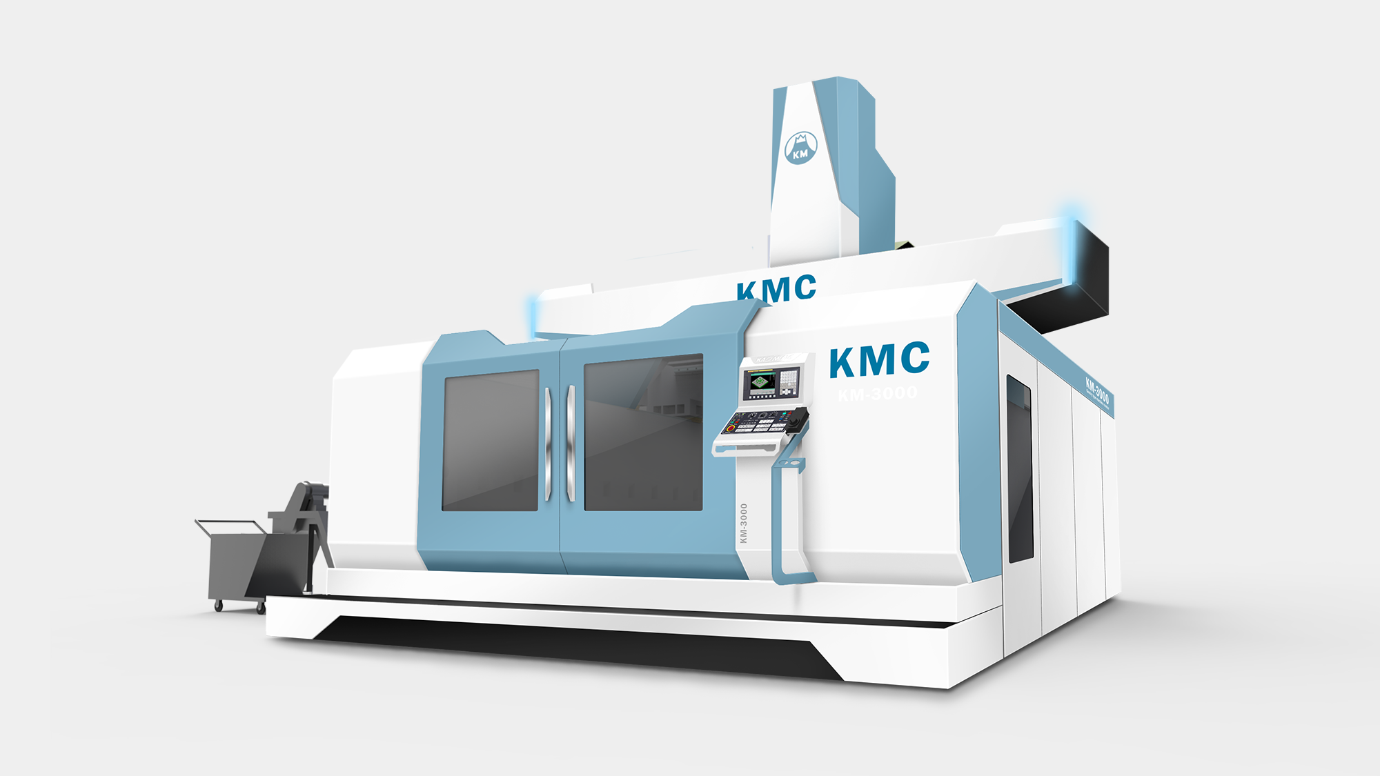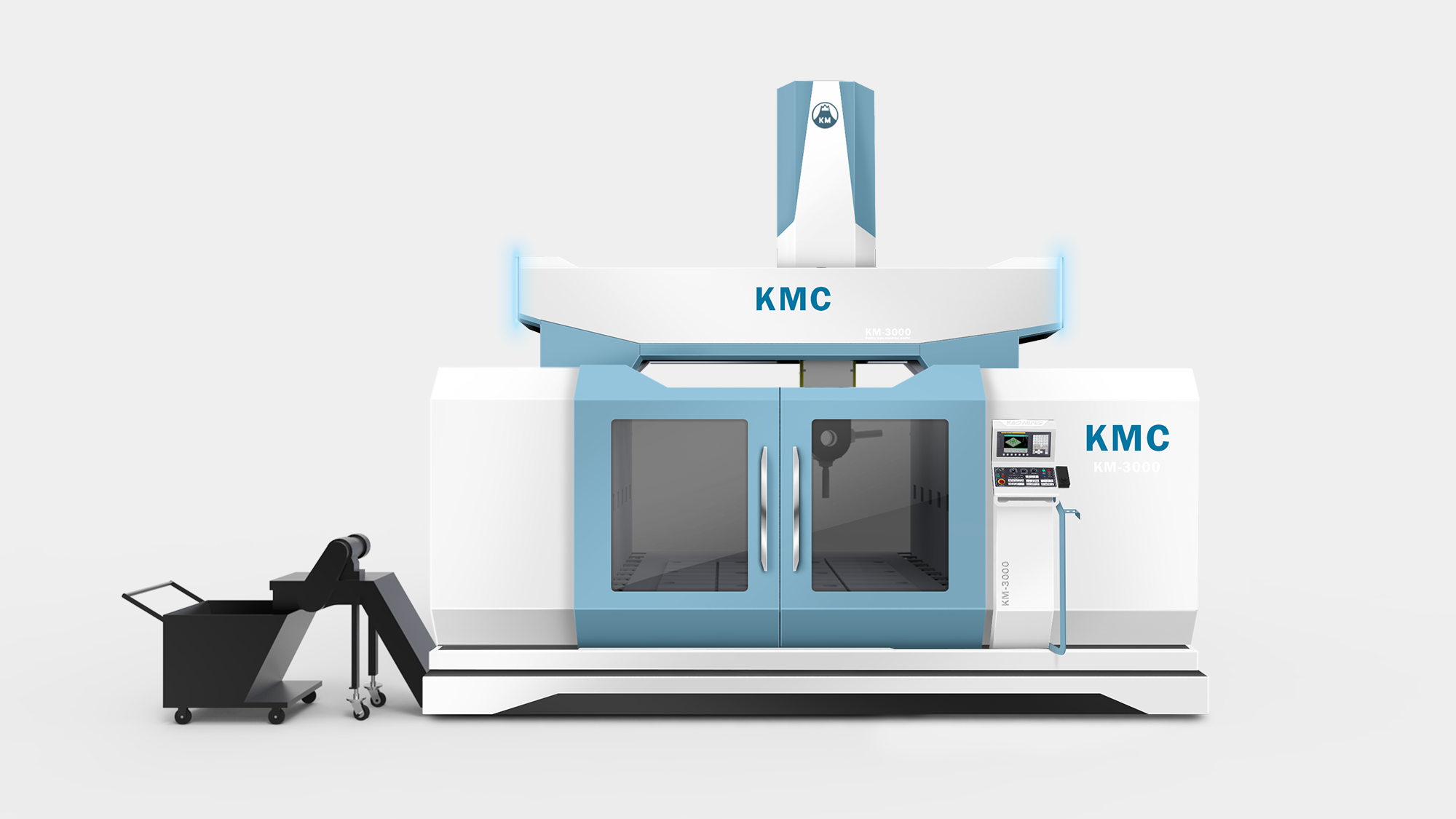 KMC-GM(325GM)定位於高端航太製造市場,要求設備具備極高的穩定性與前瞻科技感。形碩設計的任務是在保持「龍門式機具」寬闊氣勢的同時,導入航空美學元素。我們透過簡潔俐落的幾何線條,將「創新」、「卓越」與「高效能」的企業核心價值轉化為具象的造型語彙,協助客戶在國際航太供應鏈中建立鮮明的品牌辨識度。