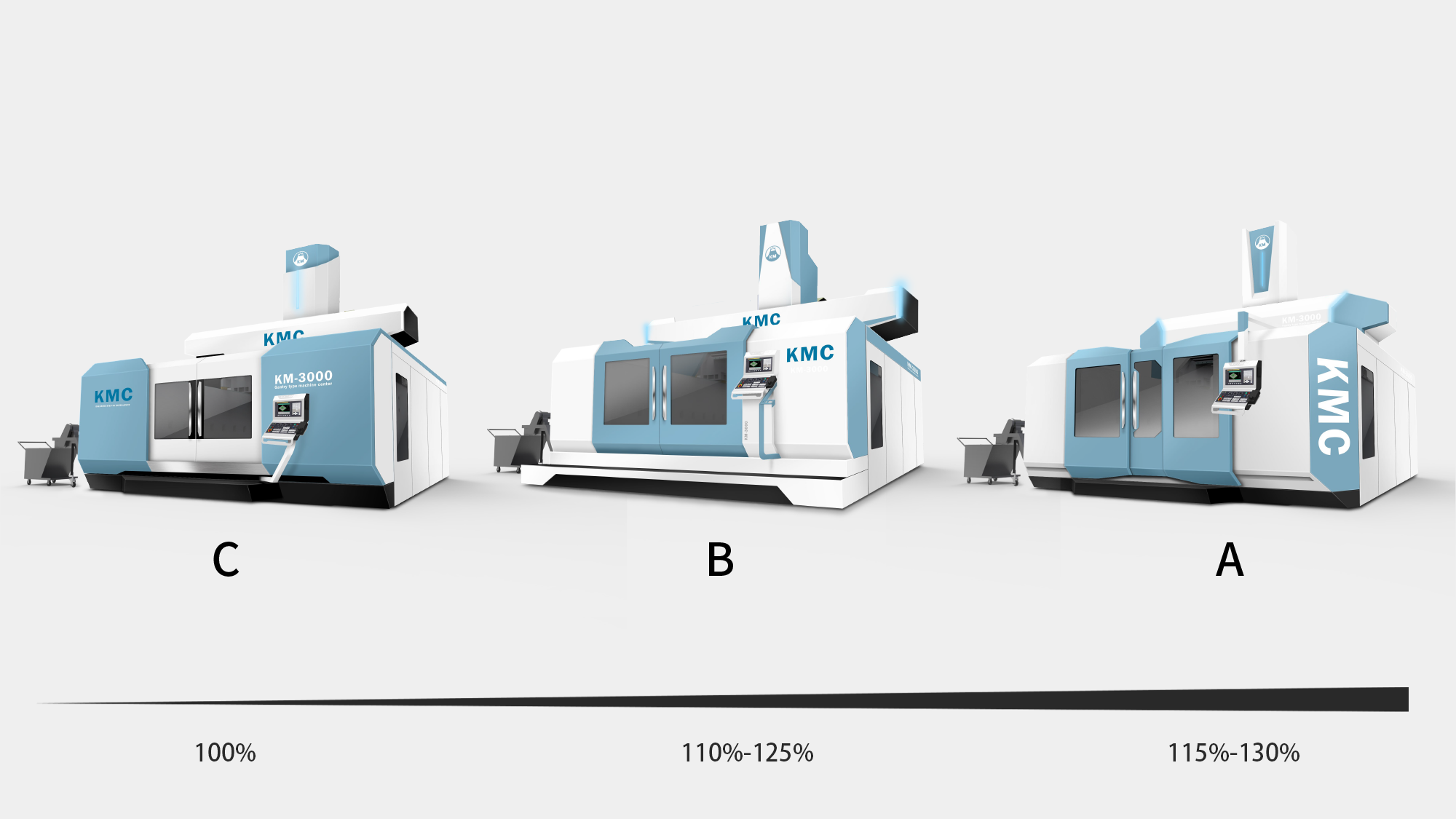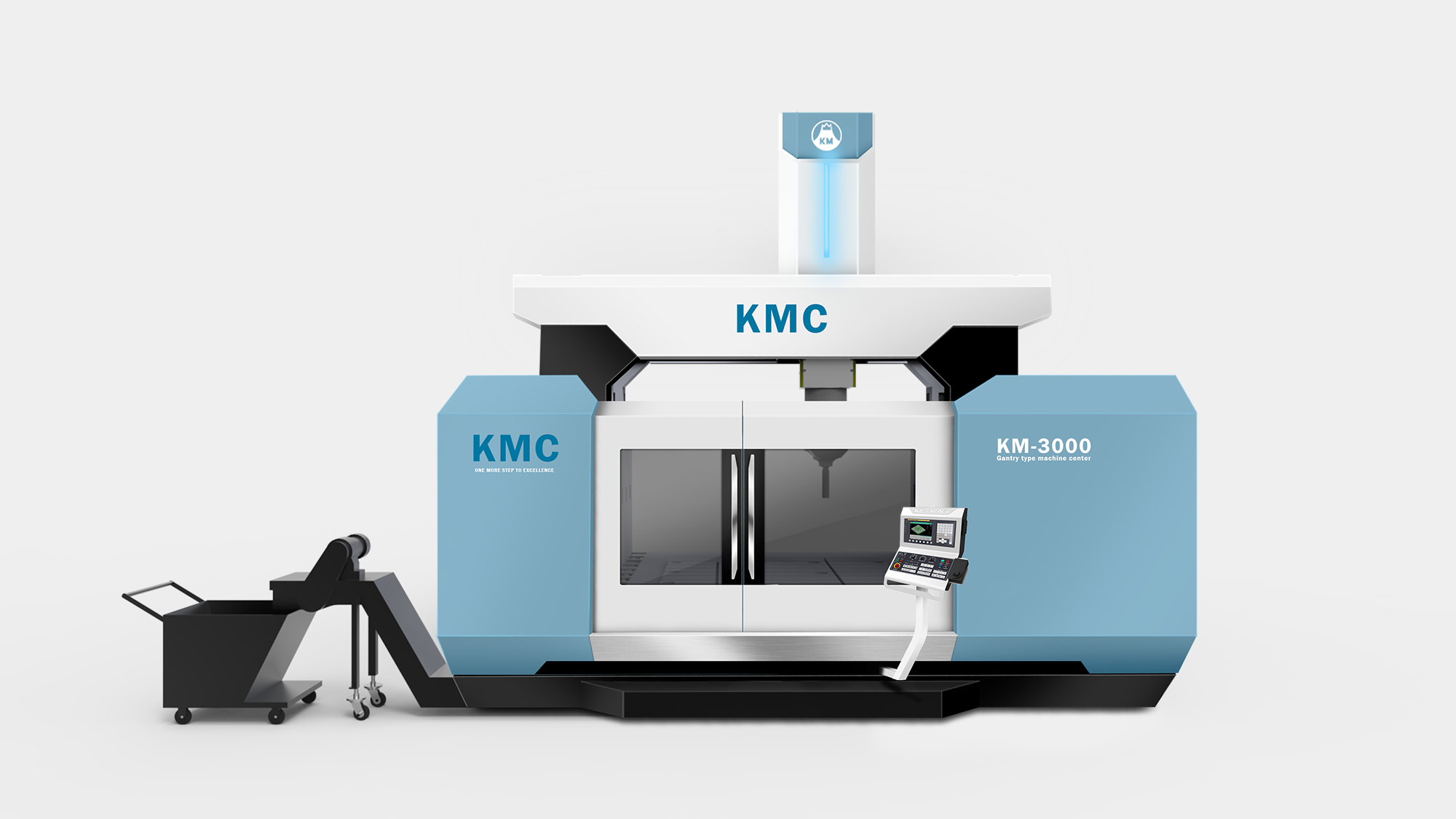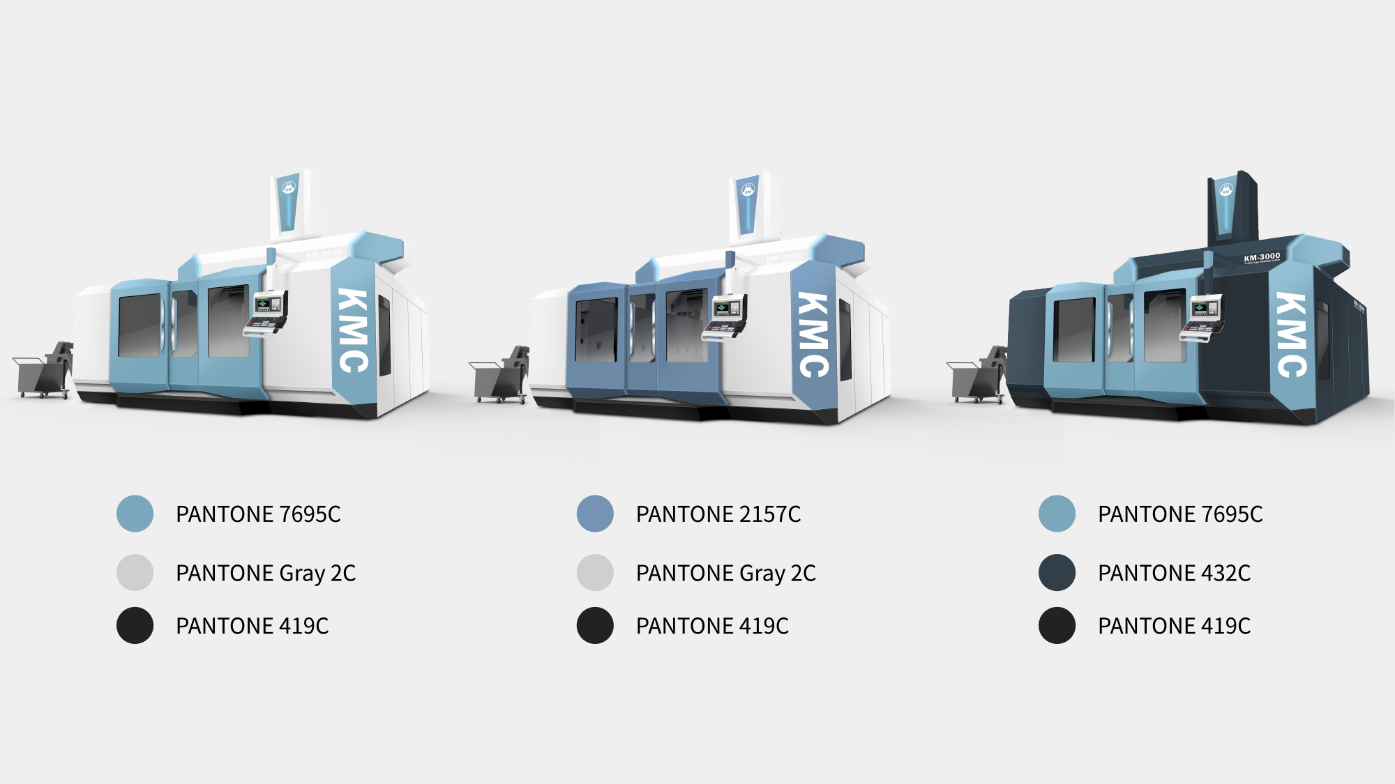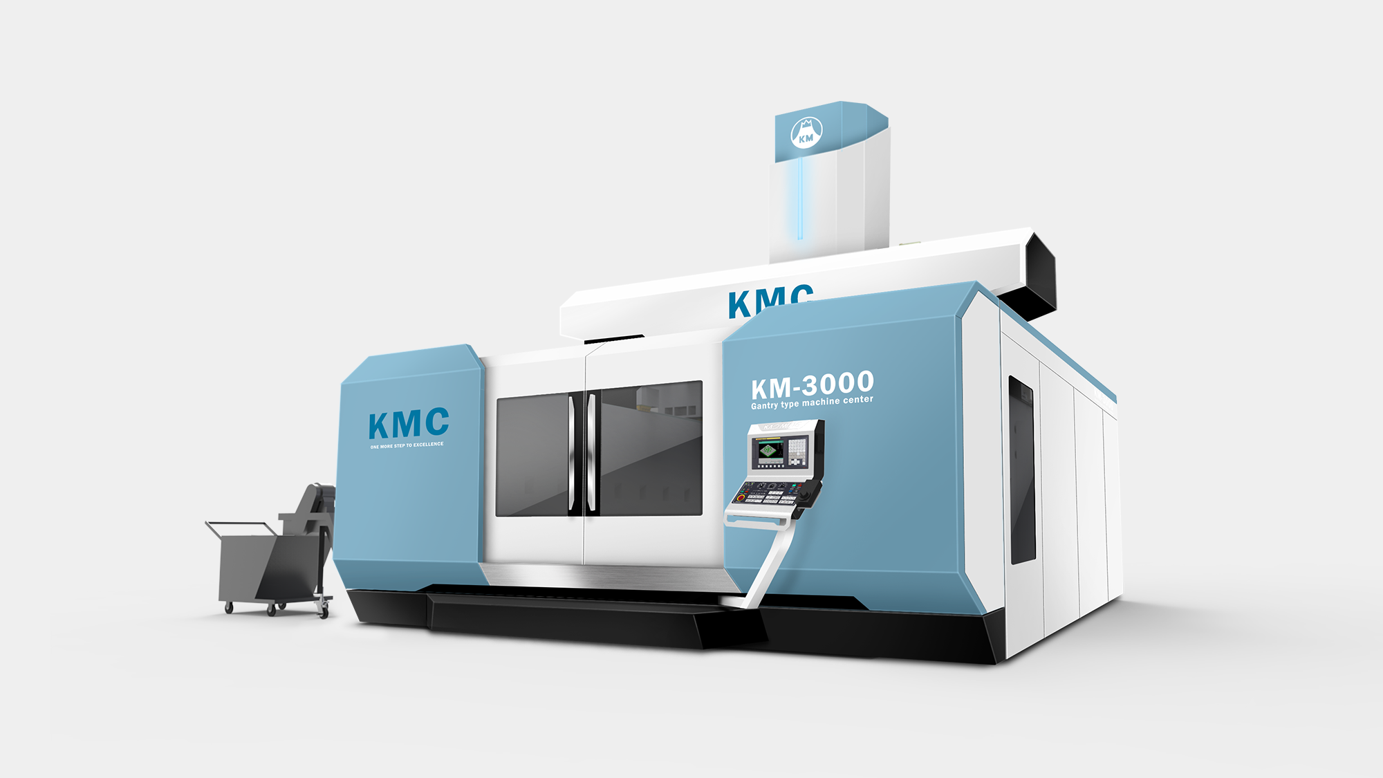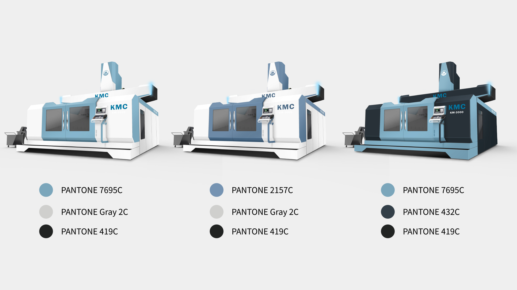 KMC-GM(325GM)定位於高端航太製造市場,要求設備具備極高的穩定性與前瞻科技感。形碩設計的任務是在保持「龍門式機具」寬闊氣勢的同時,導入航空美學元素。我們透過簡潔俐落的幾何線條,將「創新」、「卓越」與「高效能」的企業核心價值轉化為具象的造型語彙,協助客戶在國際航太供應鏈中建立鮮明的品牌辨識度。