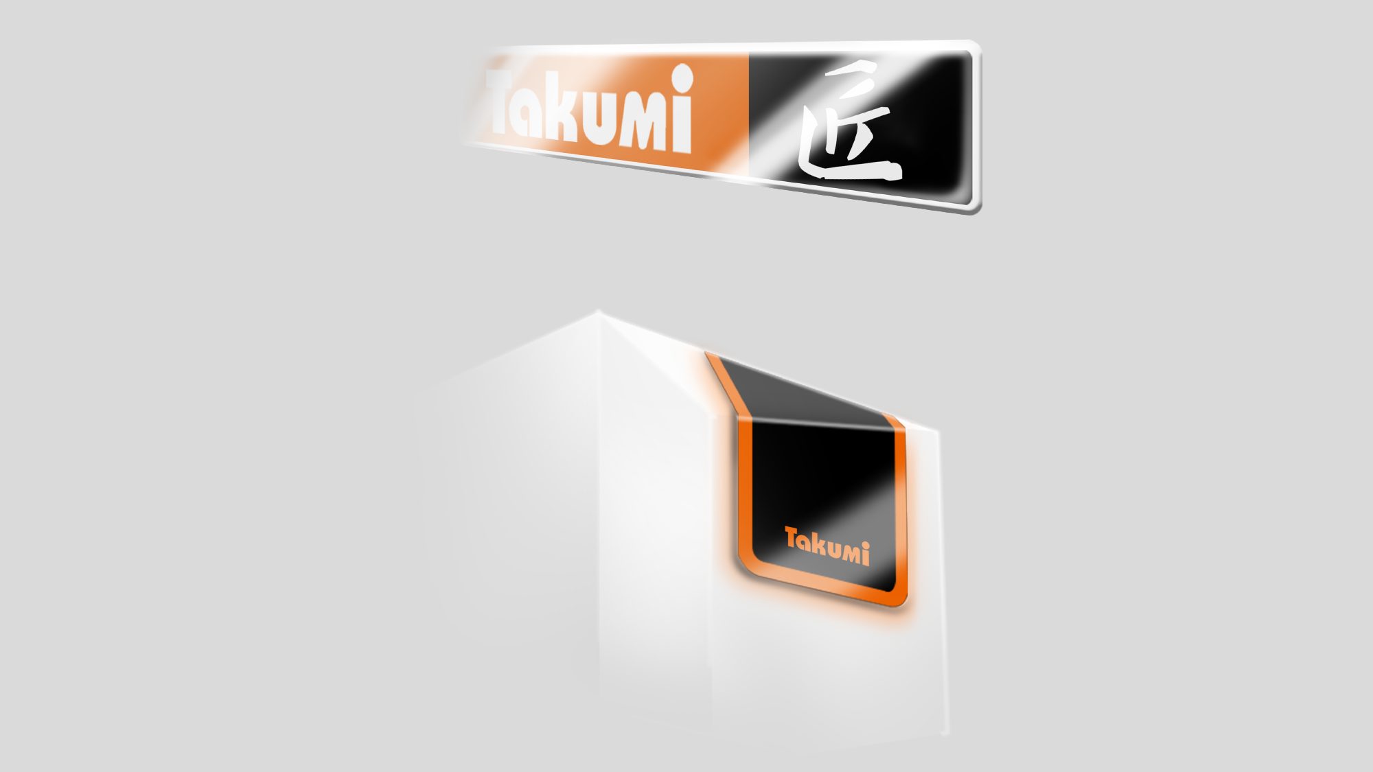 高光澤銘牌:Takumi 品牌銘牌採用高光澤表面處理,與剛硬的板金形成對比。
