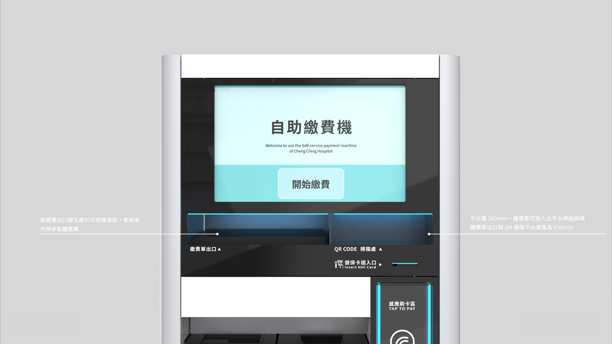 在現代化的醫院環境中,繳費機不僅是金流處理設備,更是展現醫療服務細節的接觸點。本專案旨在解決傳統設備操作介面過高、視覺導引不明確以及冷冰冰的機械感等問題。