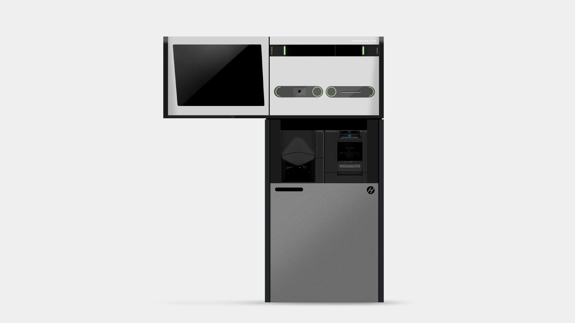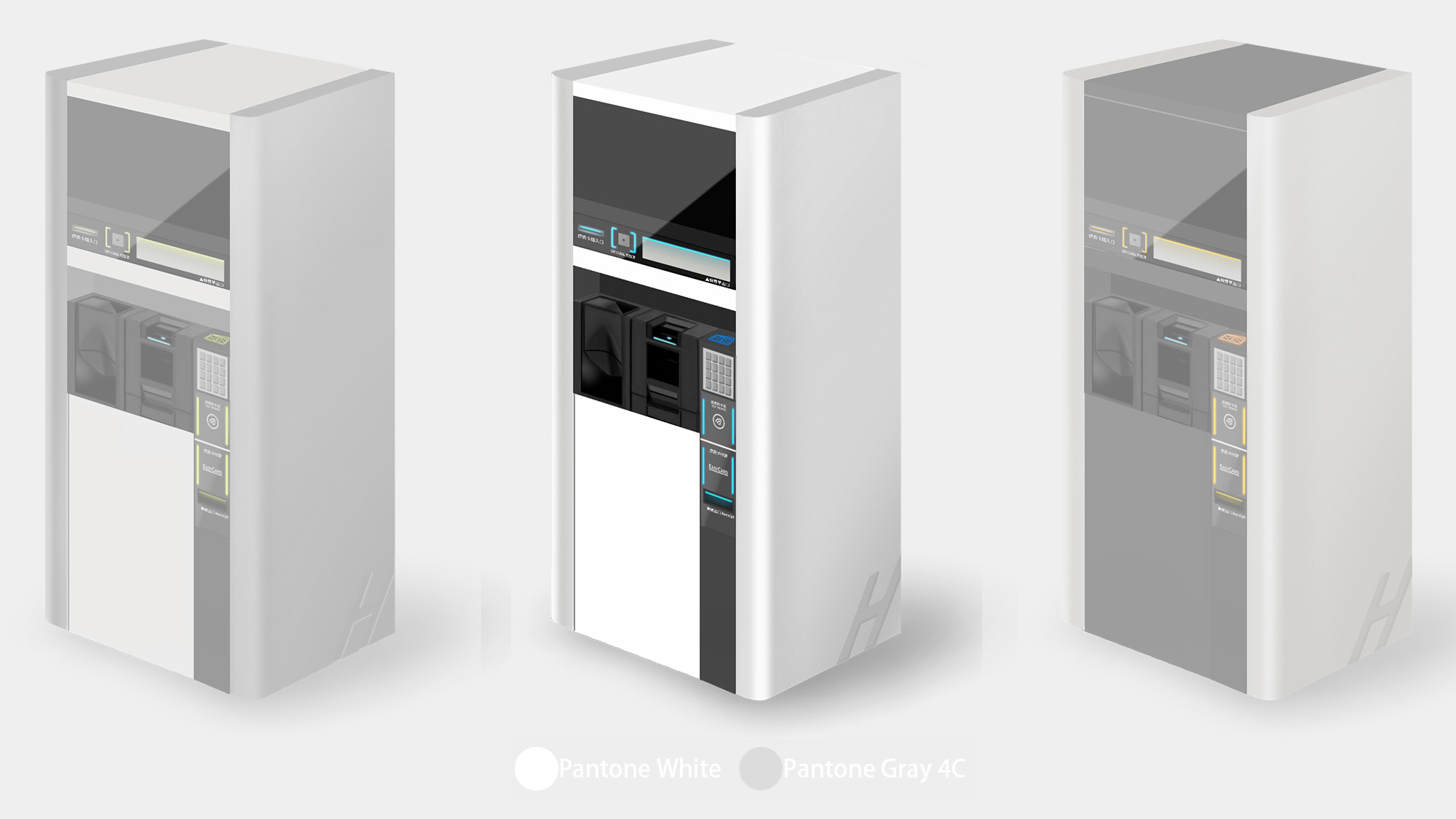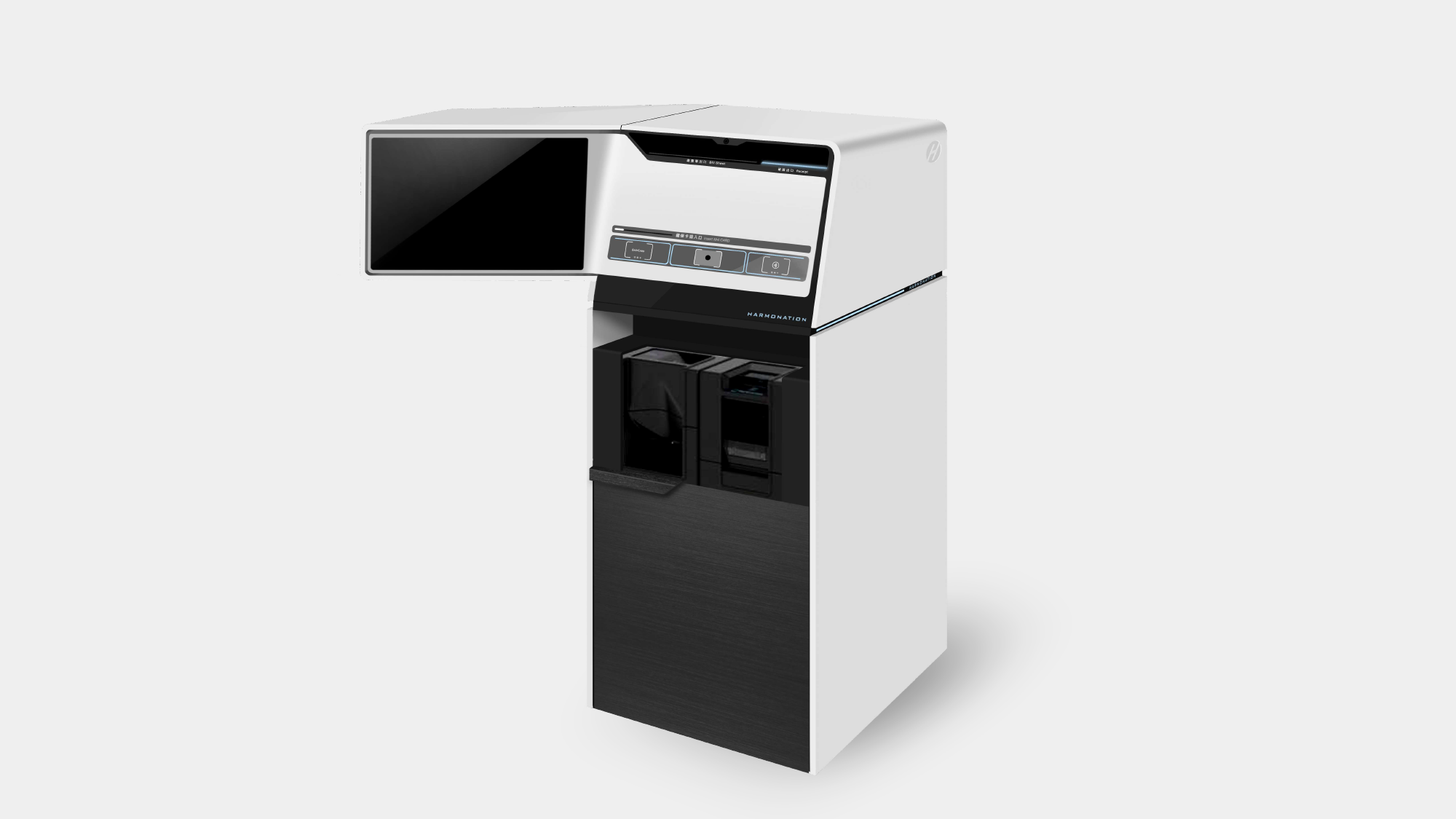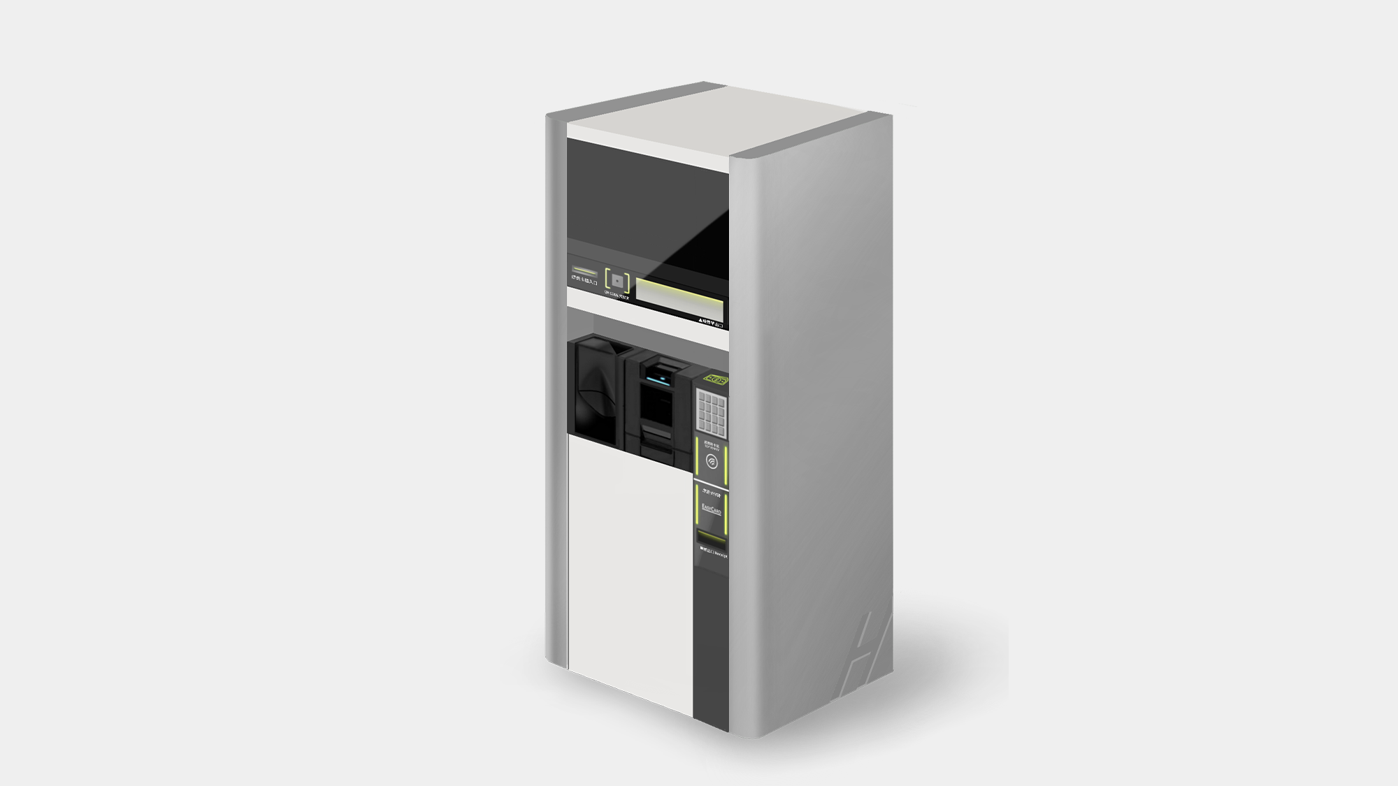 針對醫院繳費環境對「低壓迫感」與「高直覺度」的雙重需求,形碩設計採取了「柔和幾何」與「功能區塊化」的優化策略。我們透過圓潤的導角消弭設備的尖銳感,使其自然融入醫療環境;並利用黑色壓克力面板作為視覺錨點,精確整合掃碼、讀卡與現金投入區,配合動態燈號指引,確保跨語系與不同認知能力的患者都能順暢完成交易流程。