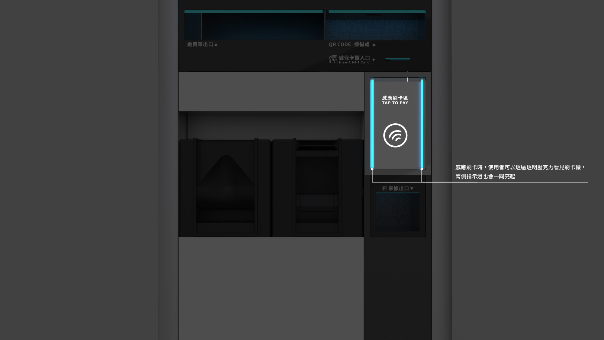 智能指引: 螢幕顯示繳費步驟時,該功能區會根據繳費進度亮燈指引,協助使用者快速完成感應支付。