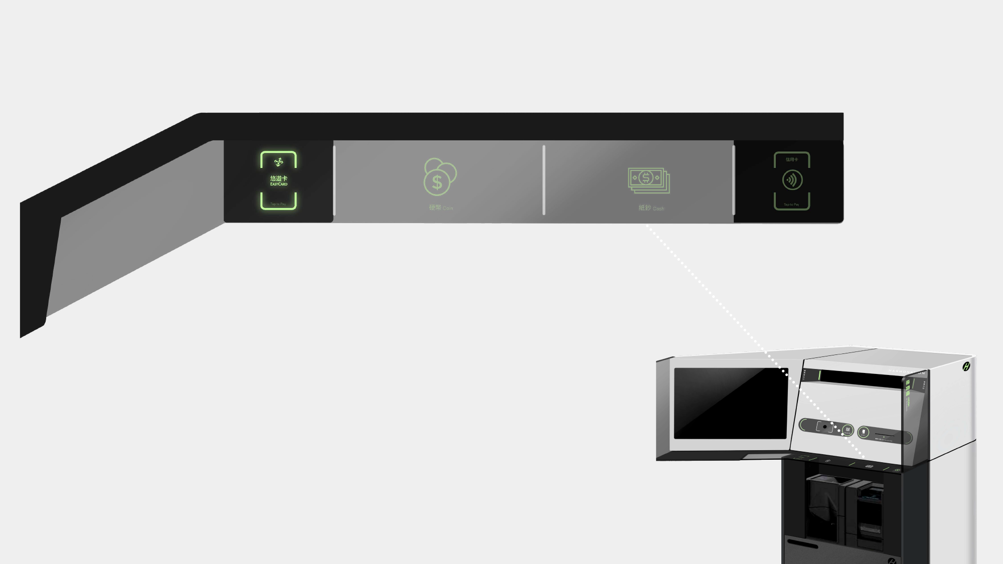 低位支付區: 付款區塊集中在螢幕下方,確保輪椅使用者在坐姿高度即可清晰辨識並觸及所有投幣口與刷卡區。