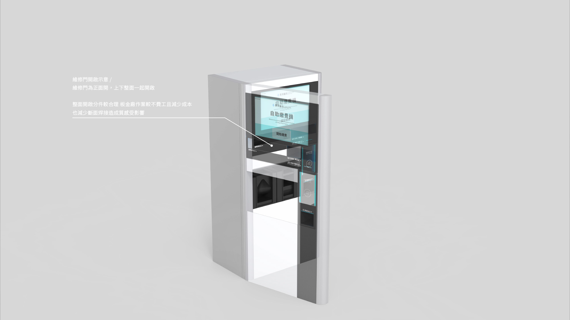 透過 3D 模擬,我們不僅優化了人機介面的仰角與觸及範圍,更將維修邏輯與品牌識別燈號深度整合,確保量產後的繳費機兼具操作直覺與專業信賴感。