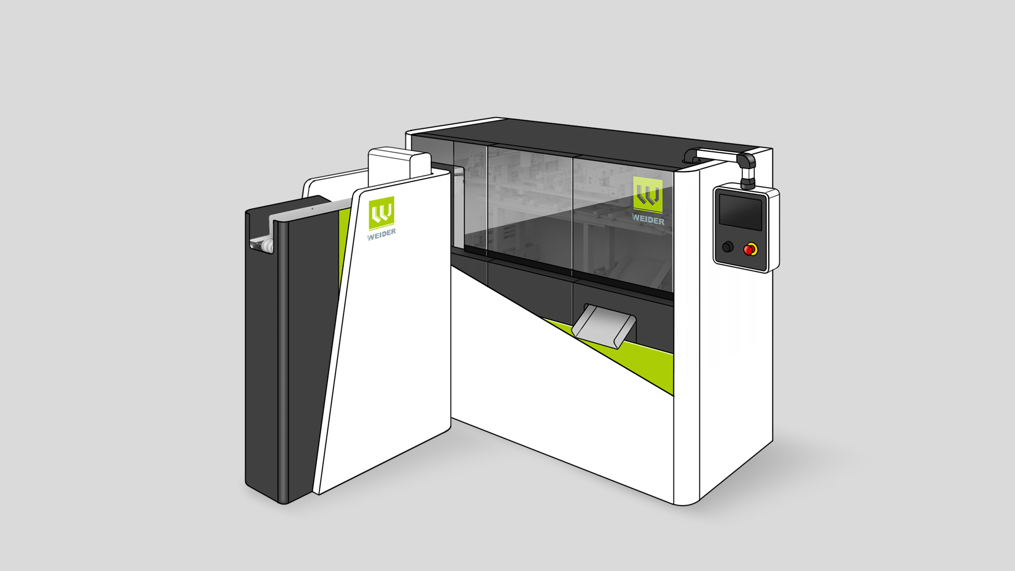 維德機械自動包裝機透過「極簡隱藏」語彙,成功將複雜的機構整合為具科技感的數位架構。形碩設計在 3D 階段創新研發「抽屜式前傾操作介面」,平時隱於下箱體以維持外觀完整,使用時則提供最佳人因視角。
