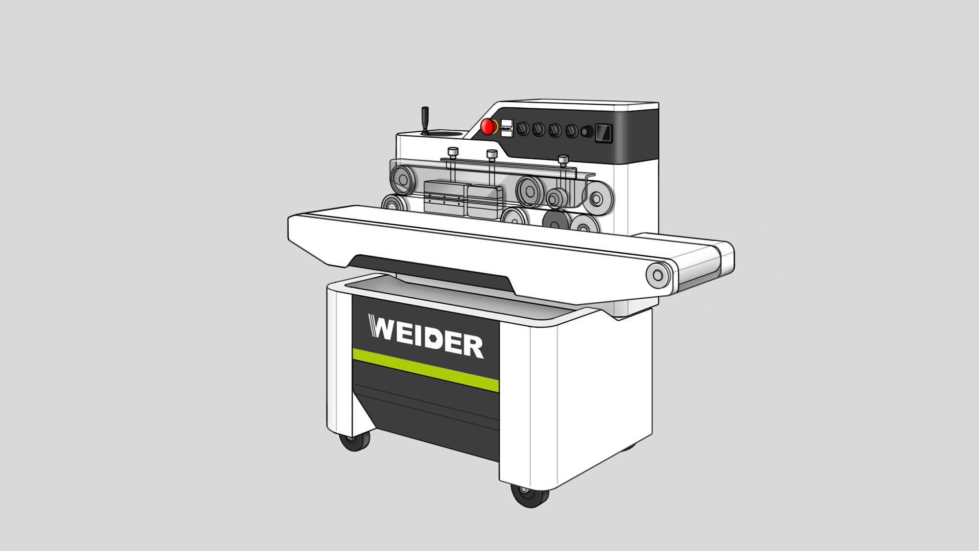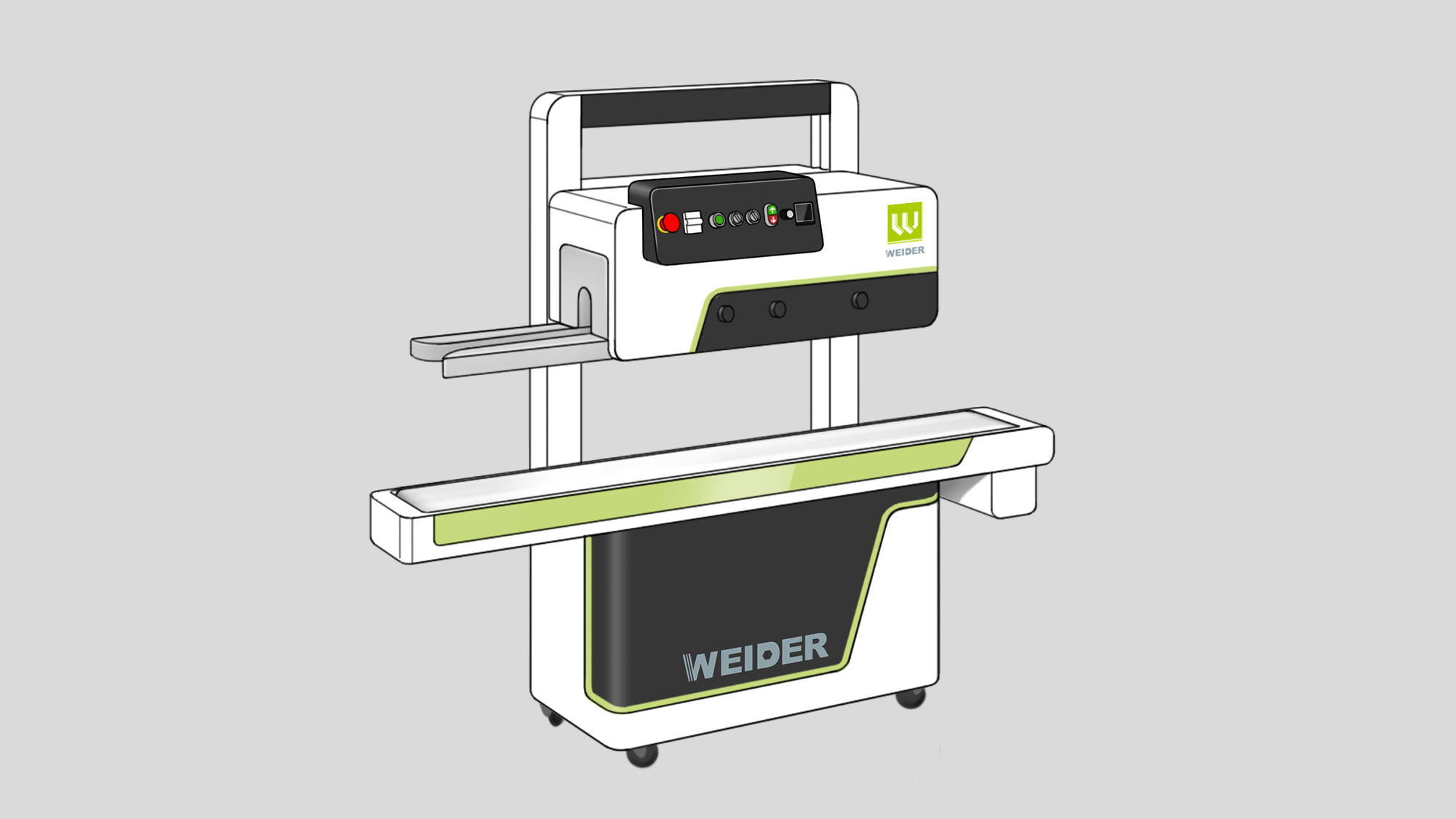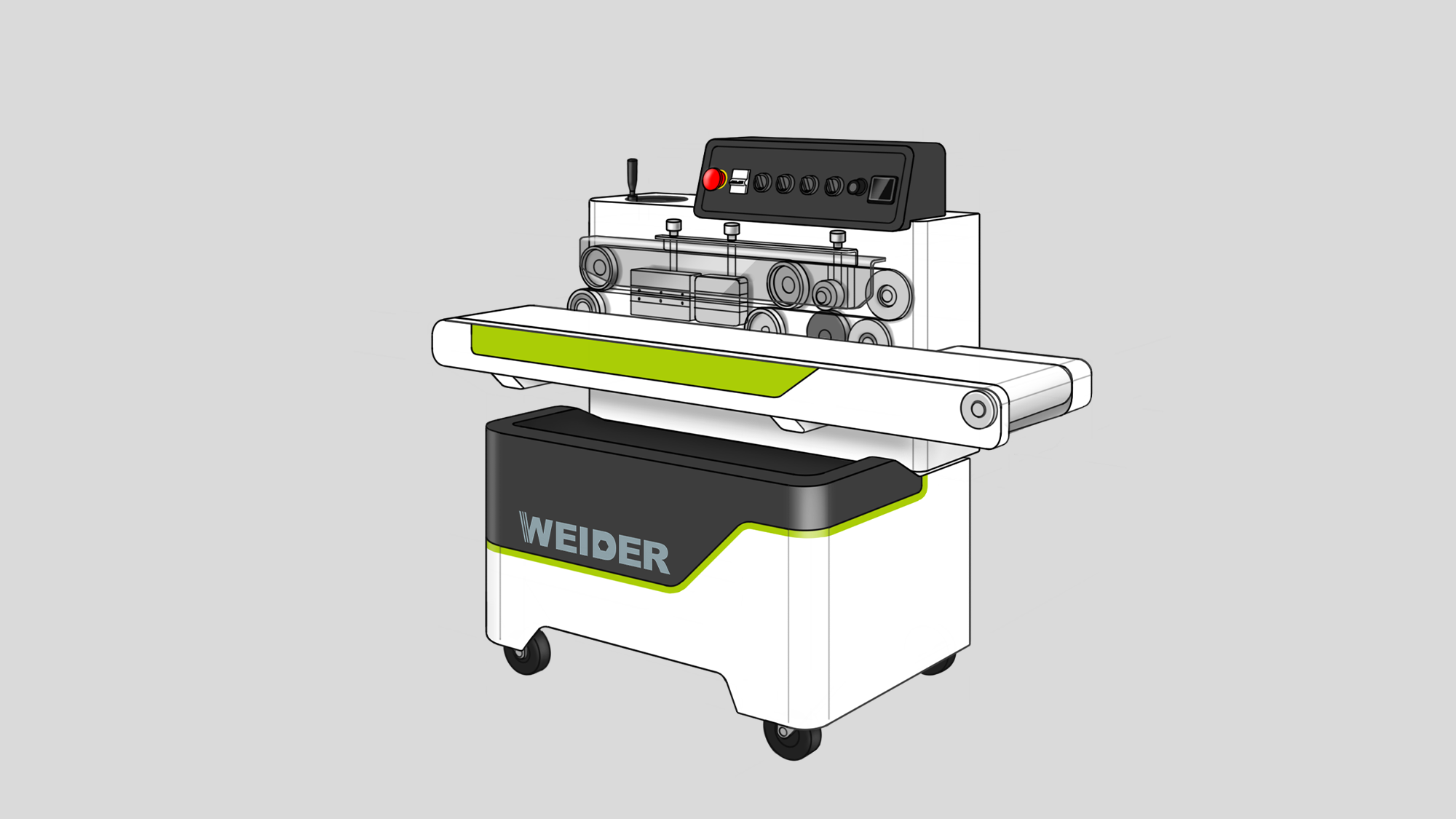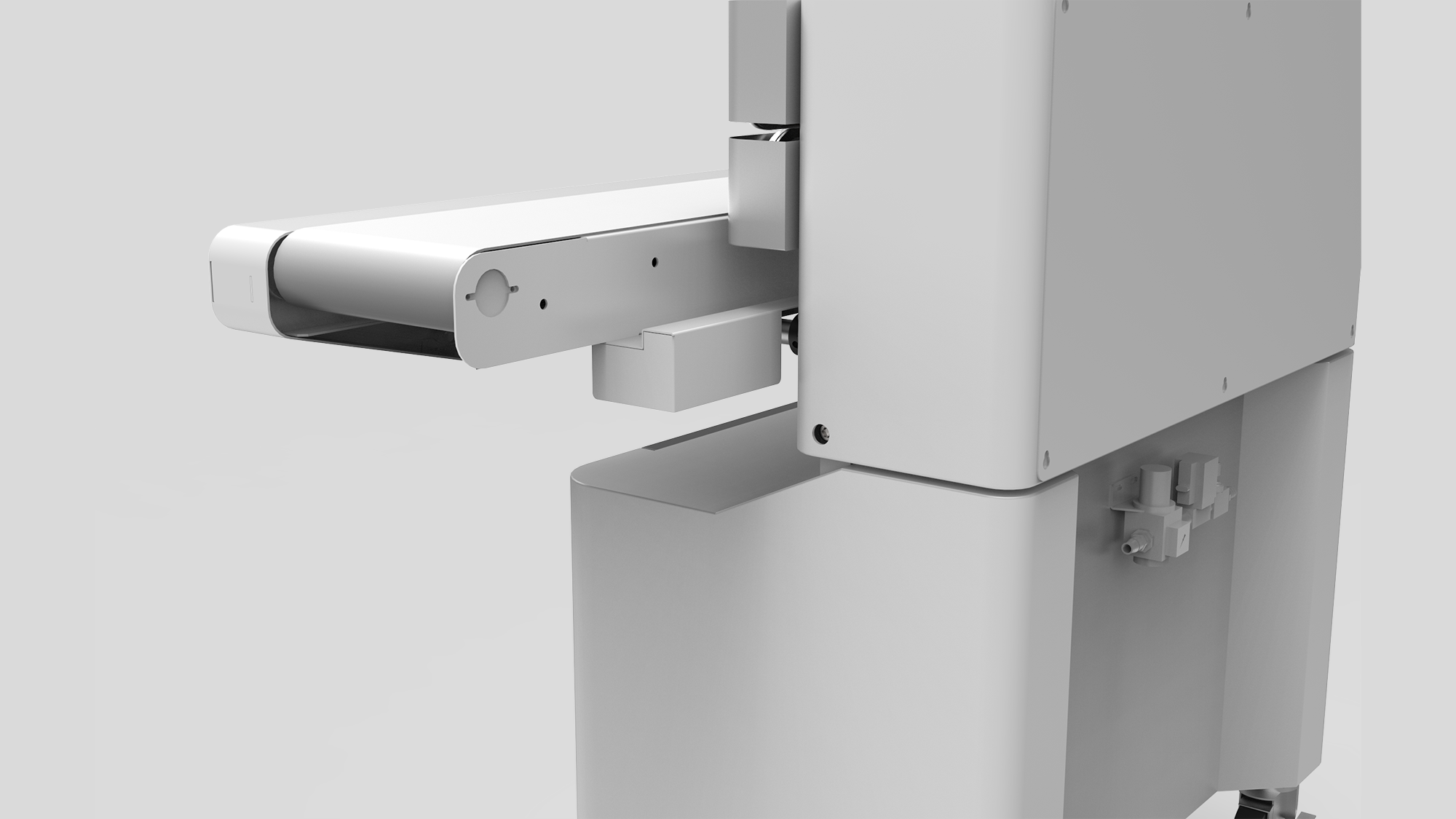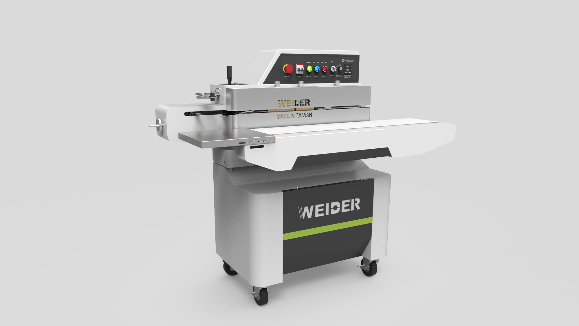 動態速度感:輸送帶外板金下方加入斜面設計,視覺化封口作業的流暢速度。