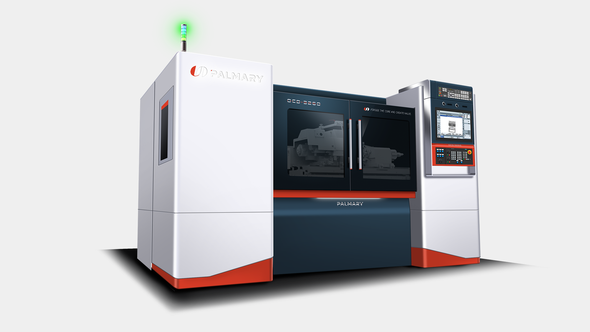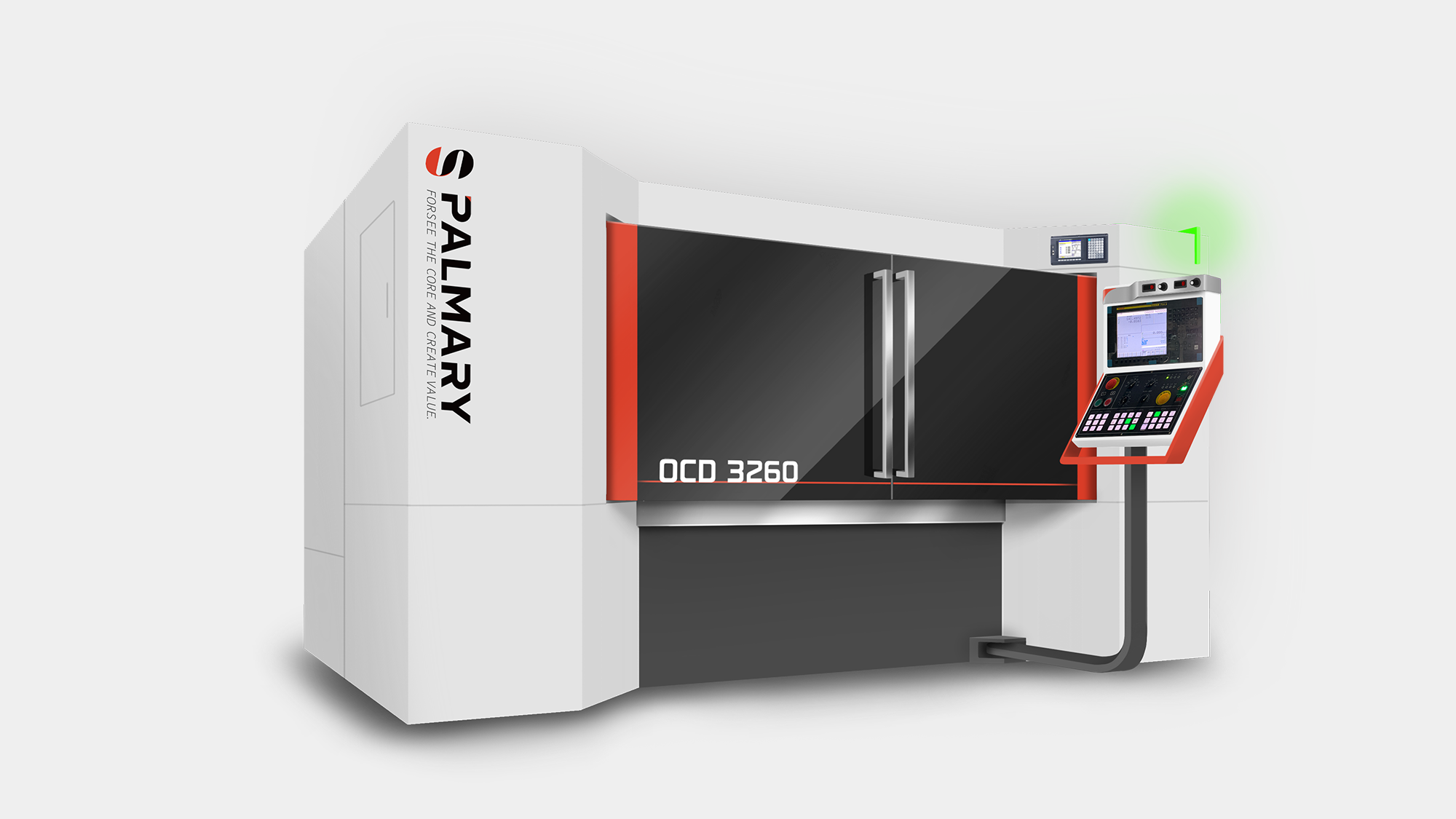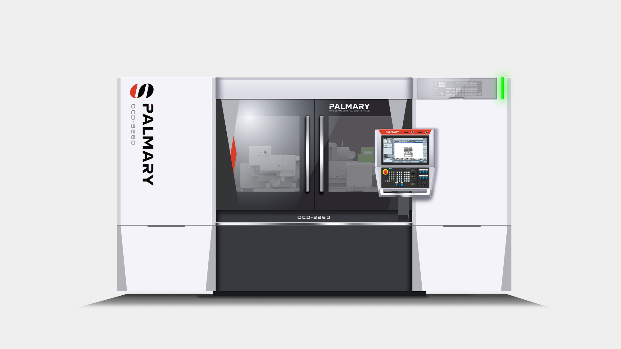 針對定位於全球市場的高階機種 OCD-3260 CNC 外圓磨床,形碩設計以「簡單俐落」為核心風格,將大光長榮「誠信、創新」的企業精神轉化為具體的造型語彙 。我們不僅需在視覺上呈現世界級磨床的精實與品質,更要解決高精度設備在複雜配件整合上的板金工程挑戰 。