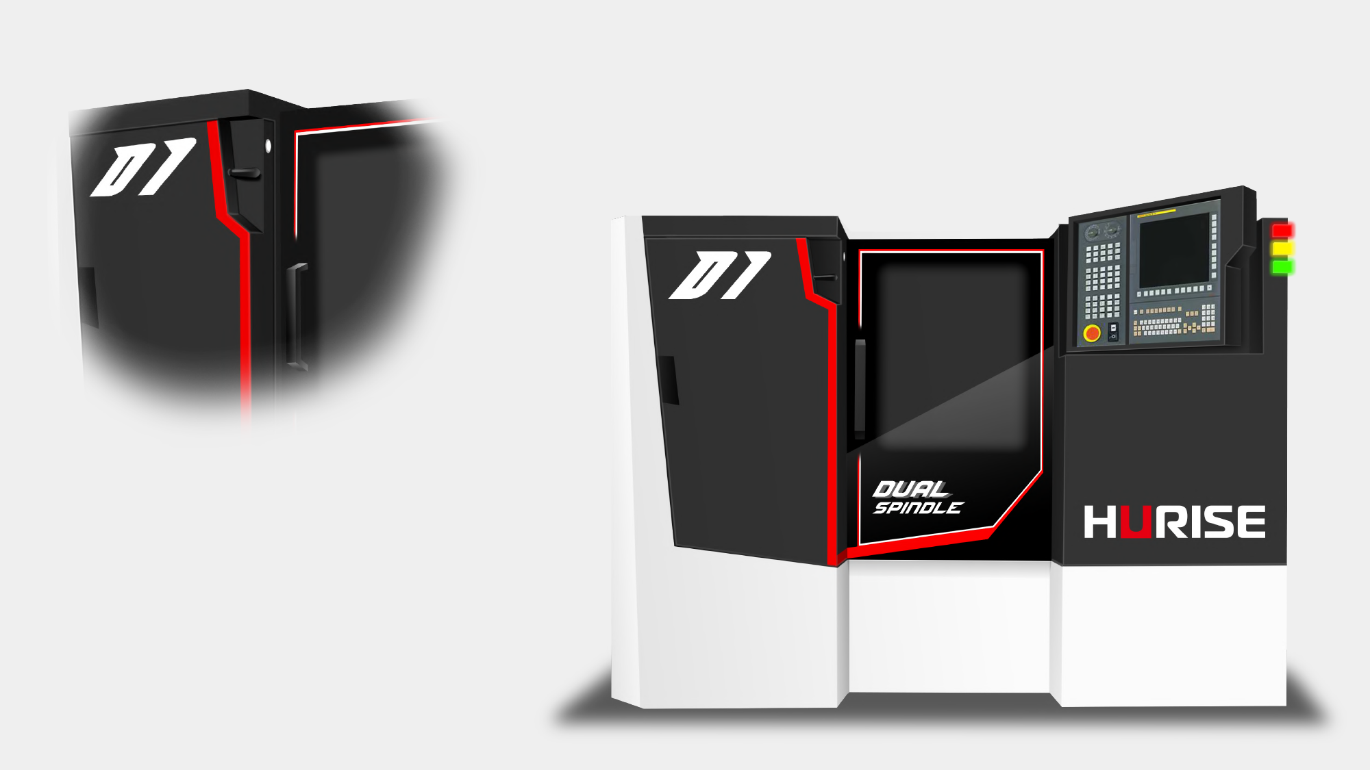 鉅陞精機 D1 以其卓越的同心度與穩定性在內圓磨削領域領先。在本次工業設計任務中,形碩團隊致力於解決傳統磨床視覺過於繁瑣、結構感過重的問題。我們透過「簡化(Simplicity)」與「俐落(Sharpness)」的板金配置,將操作視角導向加工核心,並利用紅白黑的經典配色方案,展現 D1 作為高效率、高性能設備的專業自信。這不僅是機台的換裝,更是向全球市場宣示鉅陞精機在精密研磨領域的「誠信與責任」。