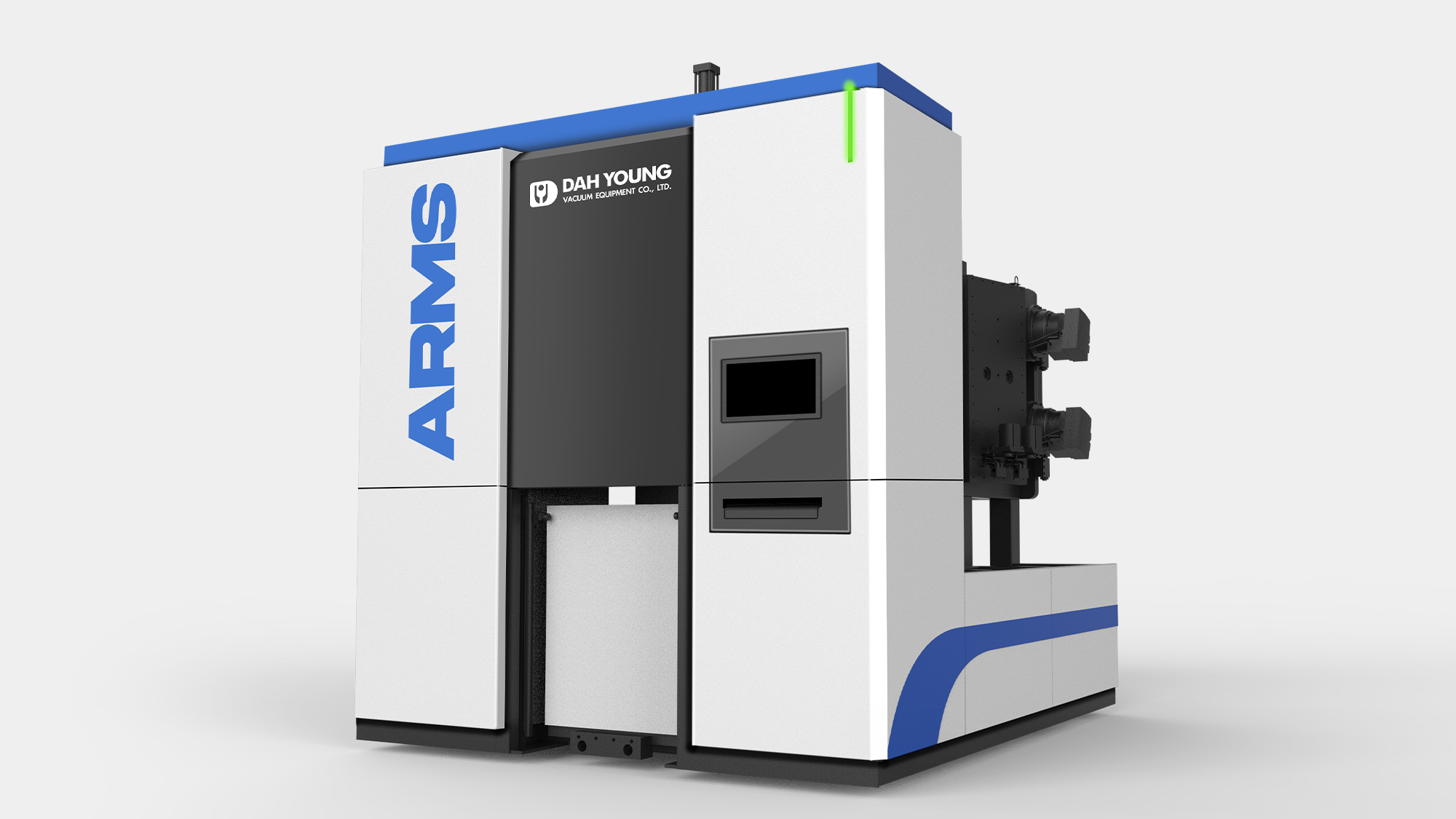 ARMS 活化反應濺鍍鍍膜機是大永真空鎖定高階光學與半導體市場的旗艦機種。本專案的設計目標在於解決傳統設備「組件散亂」與「維護動線不佳」的痛點。形碩設計致力於將散落的泵浦、真空腔體與電控箱進行視覺統合,透過洗鍊的板金線條,將重型工業設備轉型為符合現代智慧工廠審美的「精密加工儀器」,藉此傳遞技術領先與品質穩定的品牌價值。