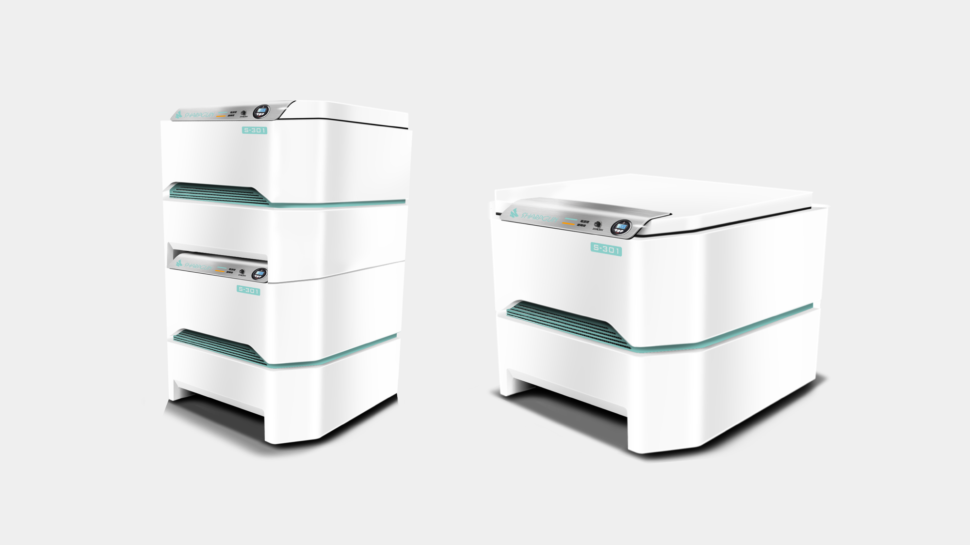在牙科診所極其有限的機房空間內,設備的「坪效」是關鍵。形碩設計本次受邀研發元大牙科之「靜音無油式空氣壓縮機」,核心目標在於滿足診所對於「垂直堆疊」的剛性需求 。我們不只要解決高頻運作下的低噪音物理極限,更須在結構上確保堆疊時的穩固性與視覺美感,將功能性的工業設備轉化為極具品牌辨識度的智慧醫療產品 。