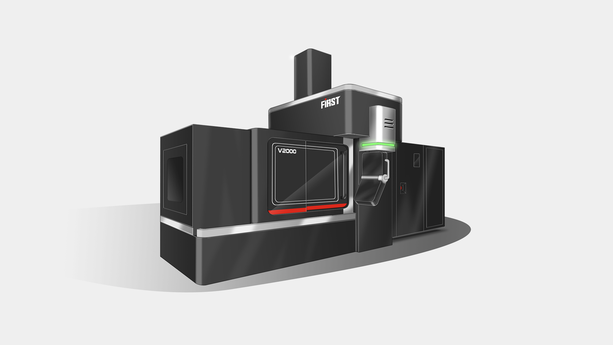 在 V2000 龍門加工機 的 3D 階段,形碩設計面臨的是如何在巨大的物理尺寸中,解決運輸物流、加工反光、以及馬達干涉等實務難題。我們透過「功能性區塊拆解」與「視覺減重工程」,將笨重的龍門組件轉化為科技感十足的幾何意象,不僅成功降低了材料成本與組裝難度,更在巨大型設備上落實了精緻的人因細節,確保這台旗艦機種在量產實務中具備極高的穩定性。