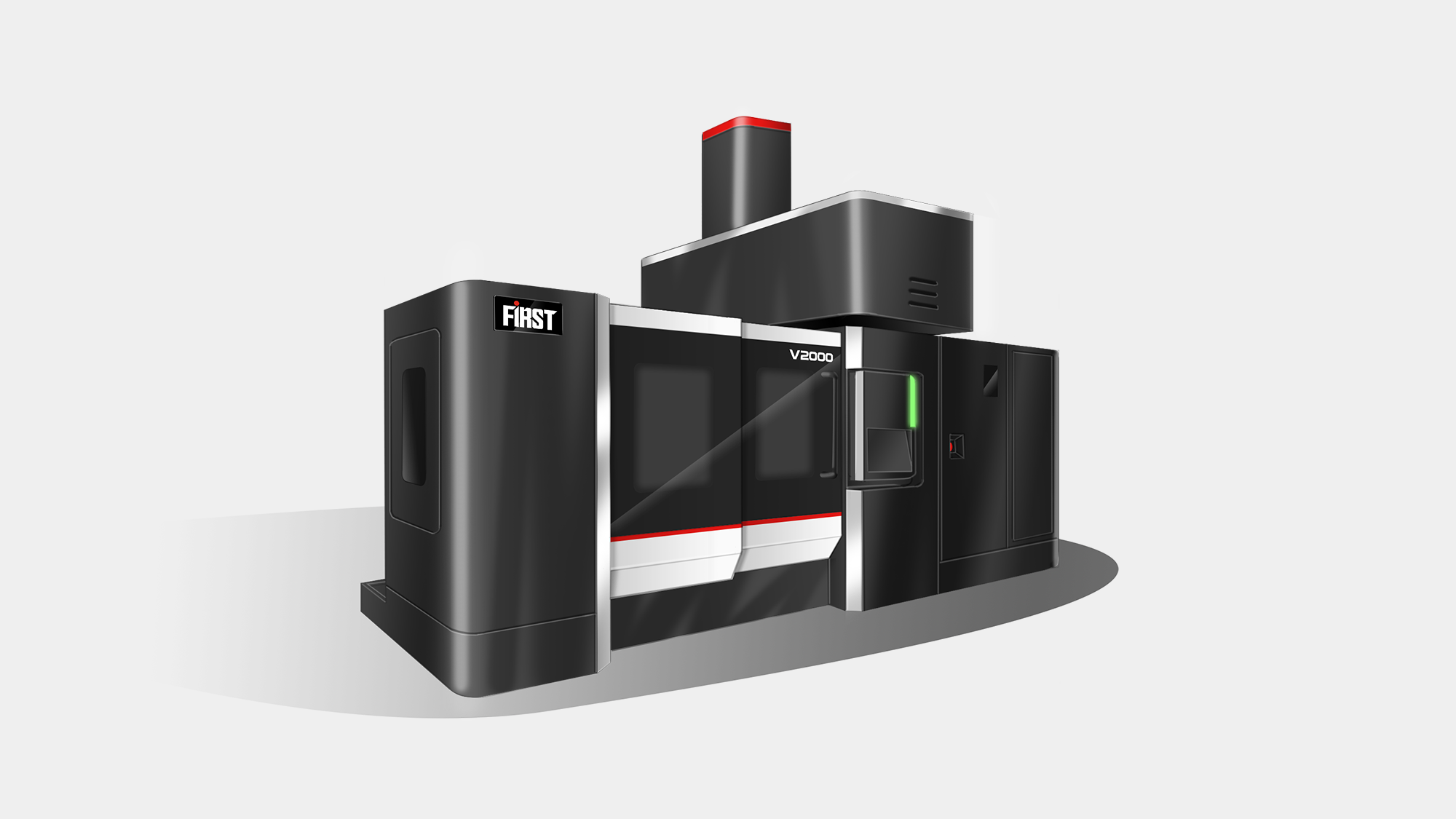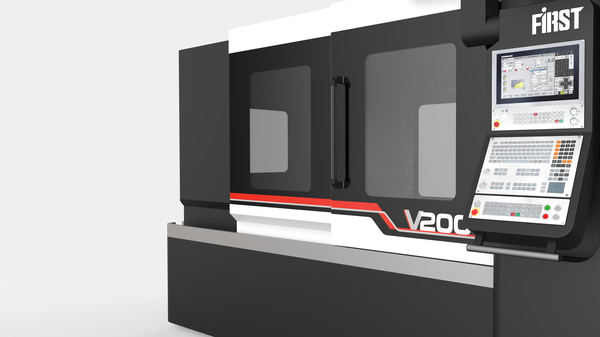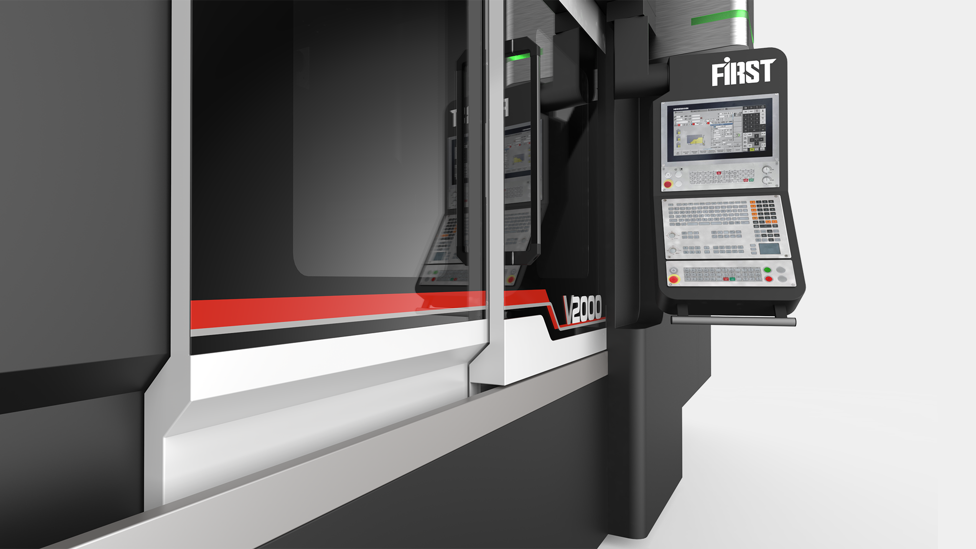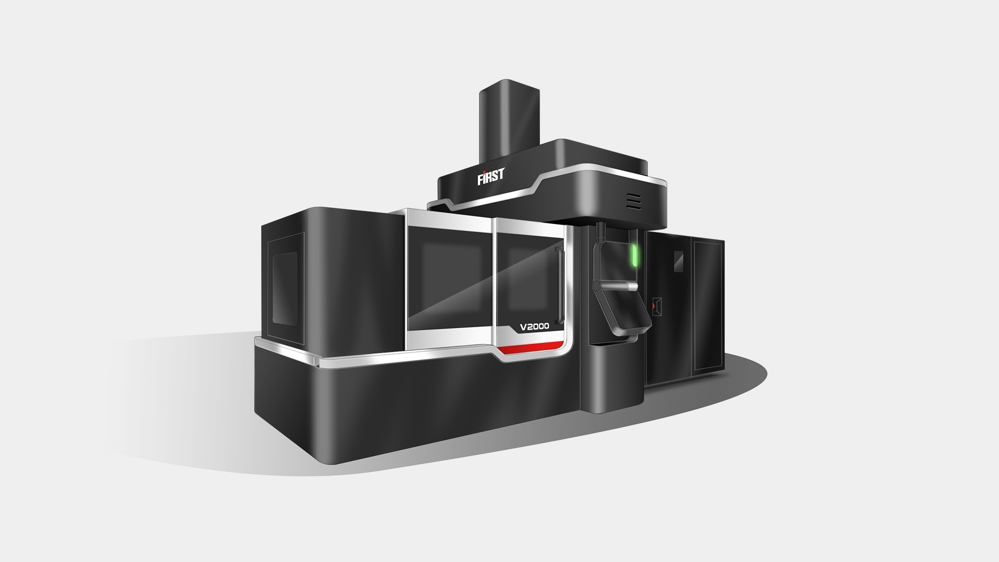 針對龍門形式的 V2000,其結構邏輯與過往的立式加工機截然不同。形碩設計的首要任務是將系列的造型特色跨平台延續,並將結構複雜的龍門機型進行「視覺整流」。