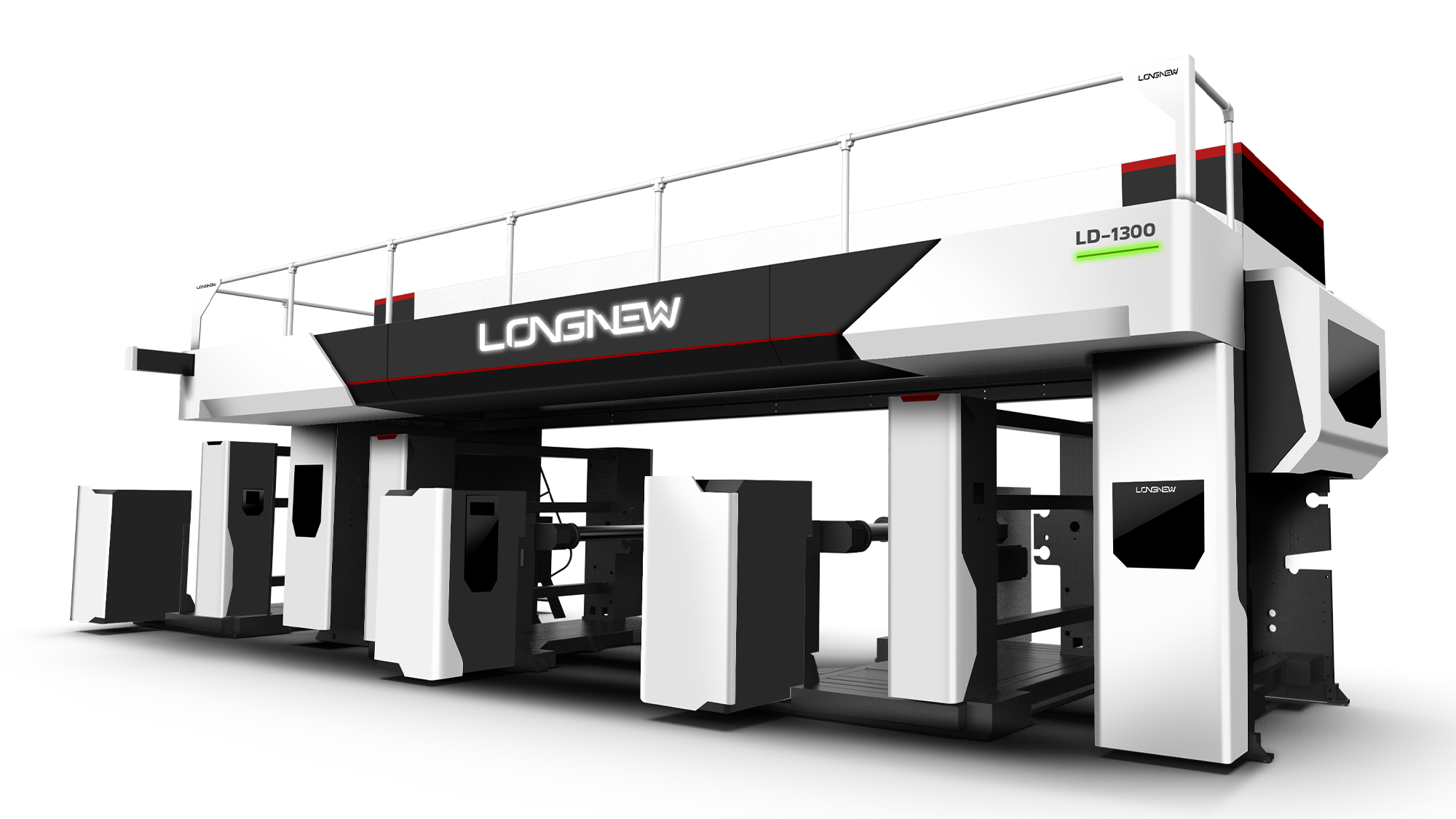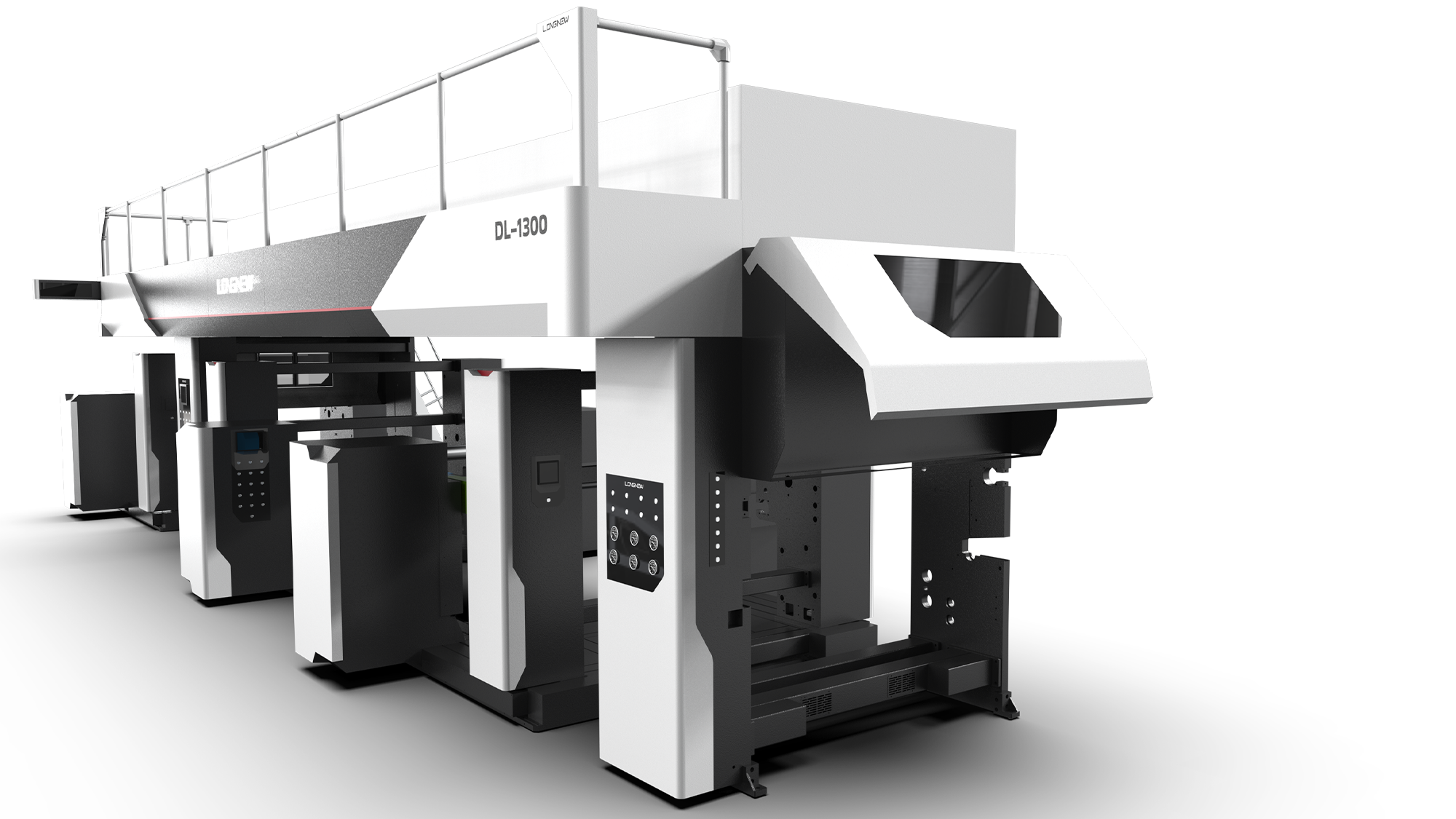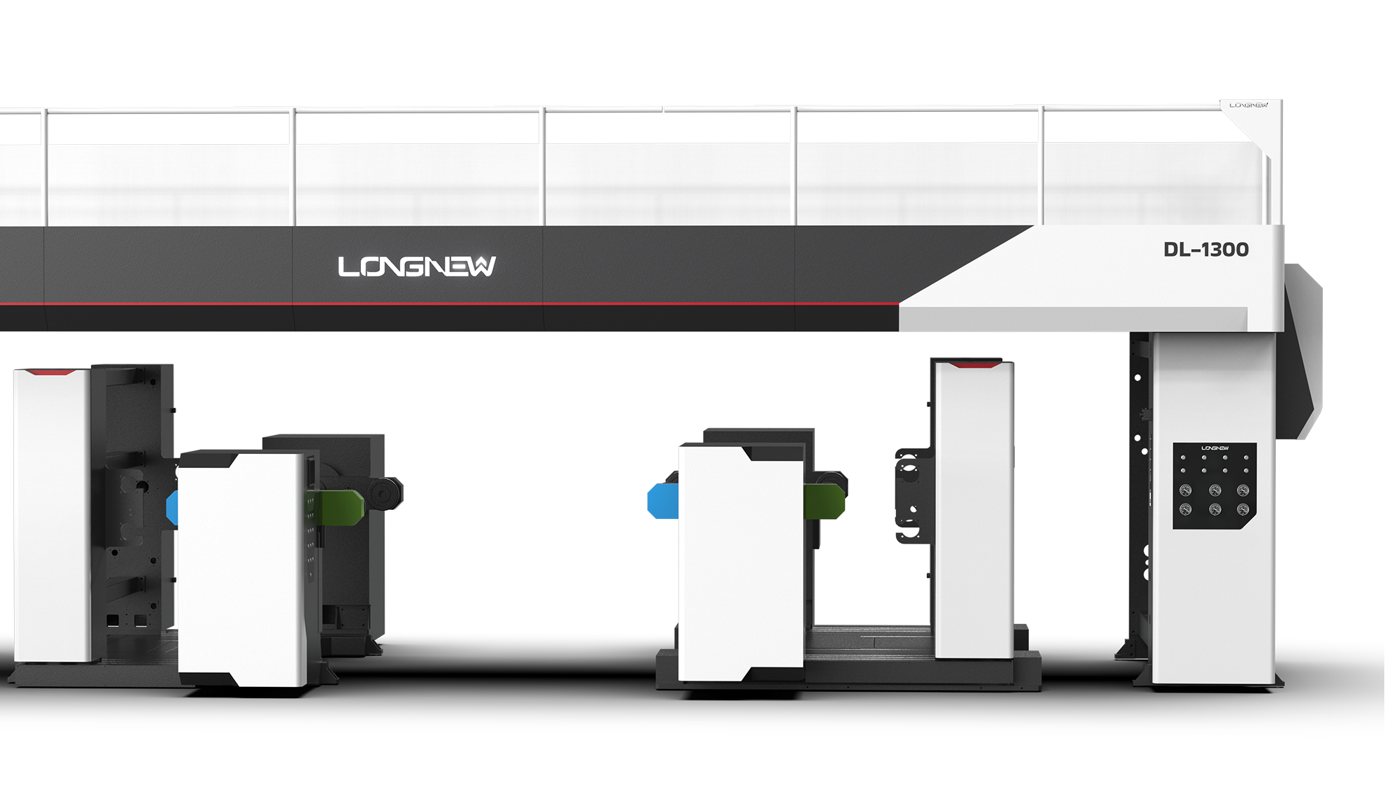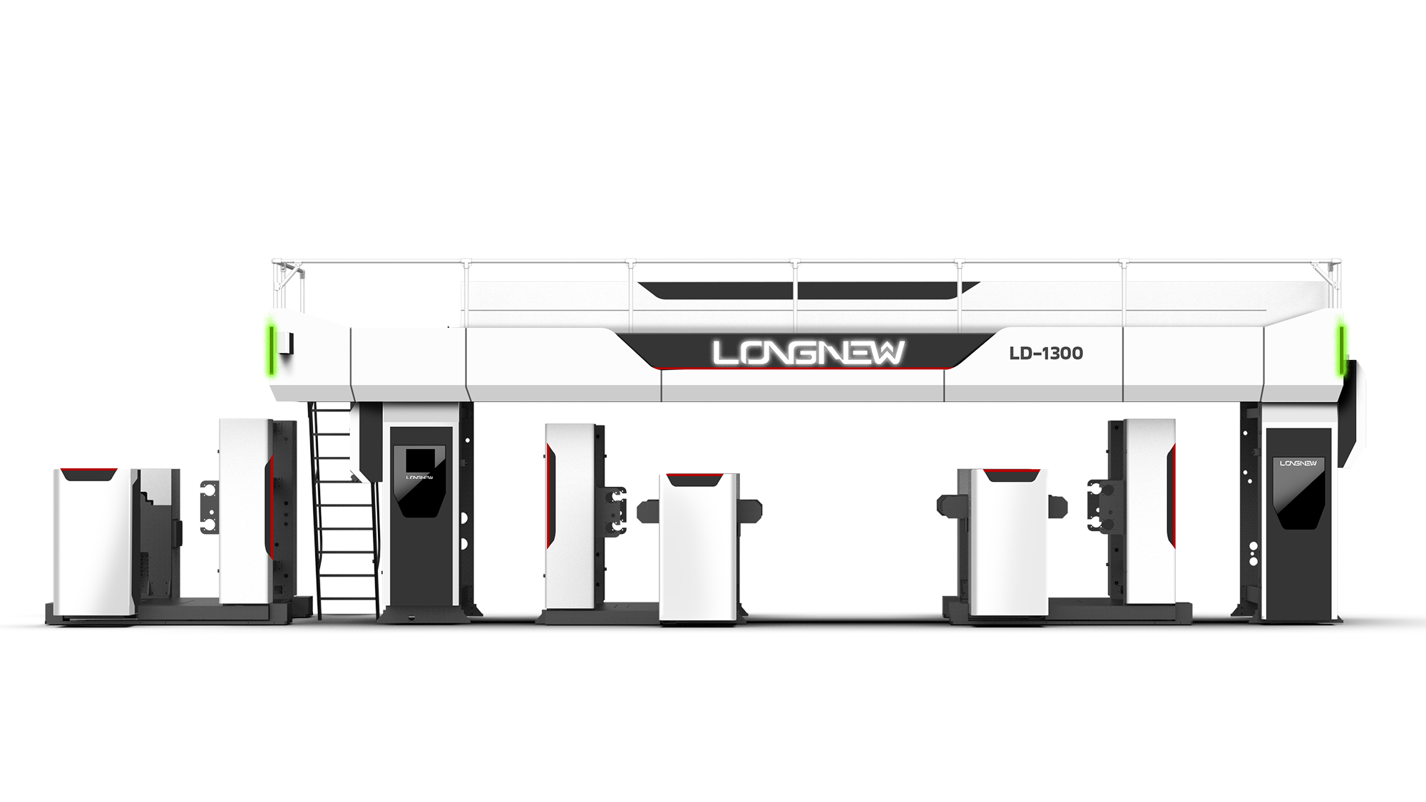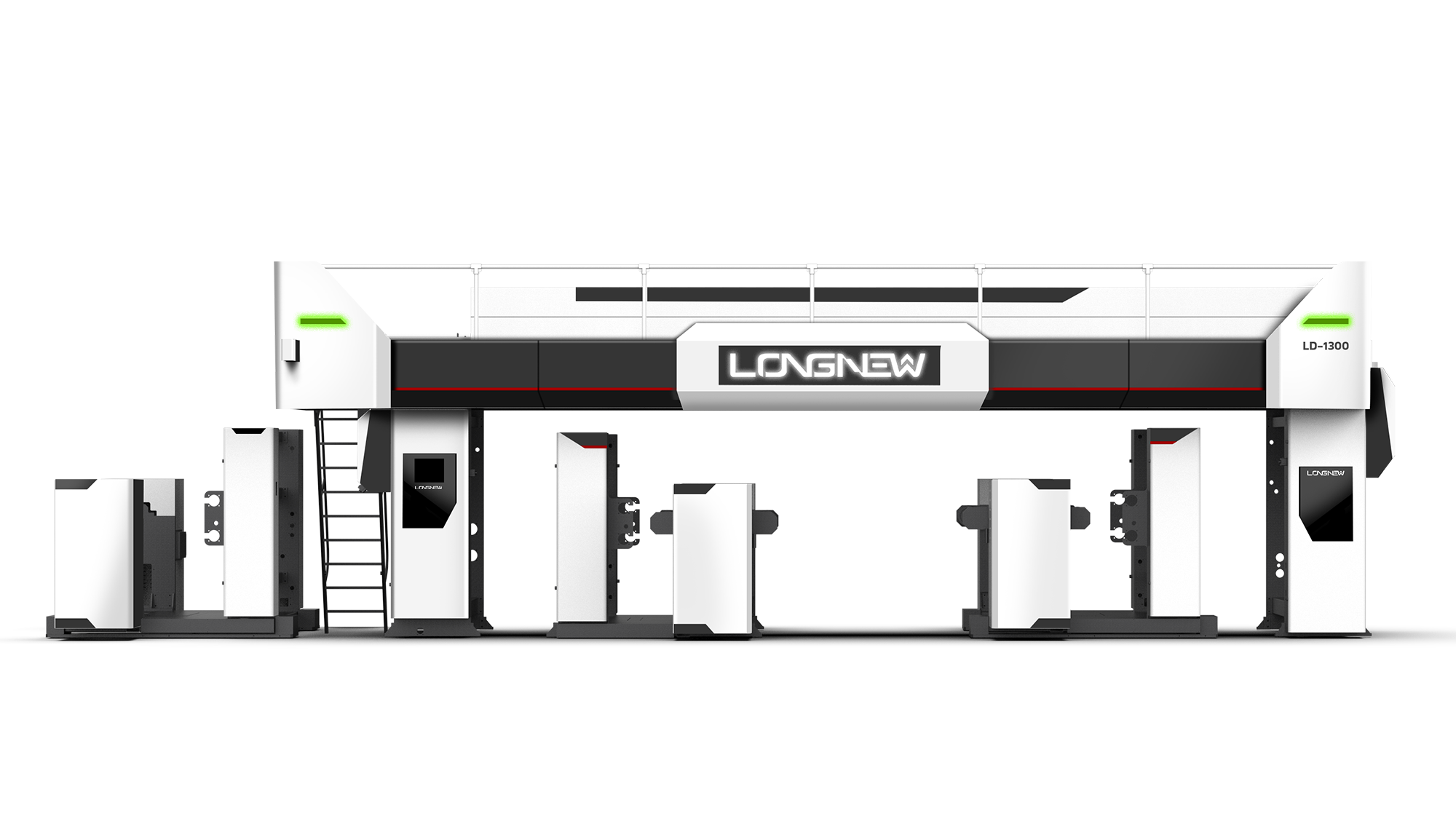 動態飾板: 在上方烘箱處增設「斜向速度感飾板」,強化了機台運行的高效形象。