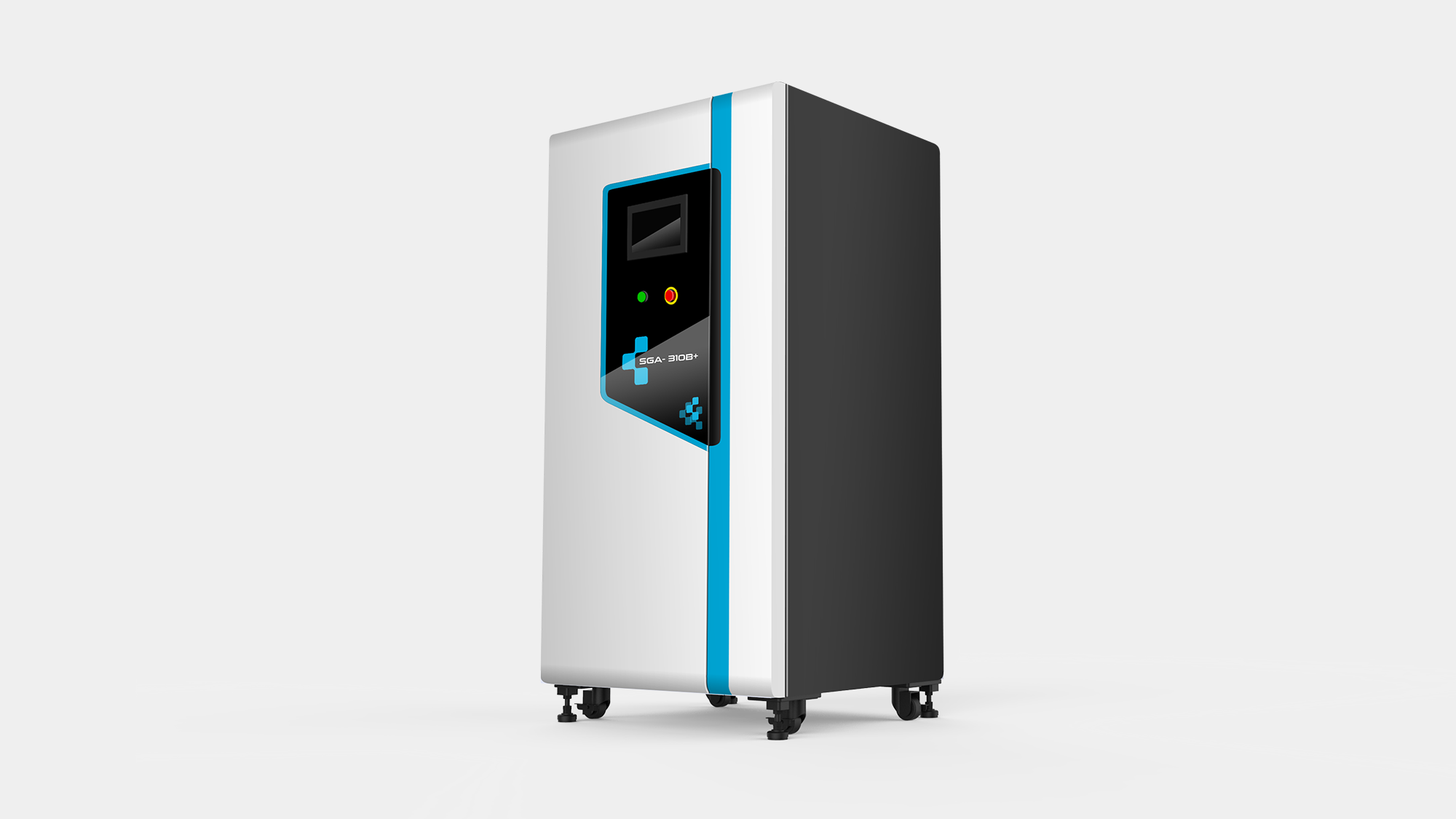 在 SGA-310B+ 的 3D 階段,形碩設計延續提案 C 的幾何相嵌語彙,將電熱水洗的高溫防護需求與精密板金結構深度結合。我們透過平整化設計,解決了廠務設備在複雜管線配置下的視覺雜亂感,並藉由圖騰化的細節設計,將品牌精神落實於符合量產規範的工業規格中。
