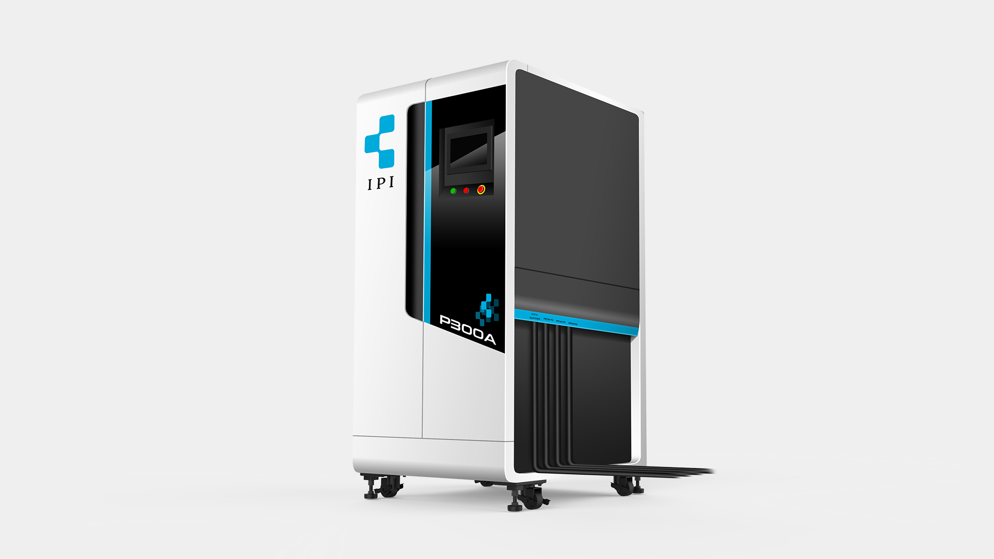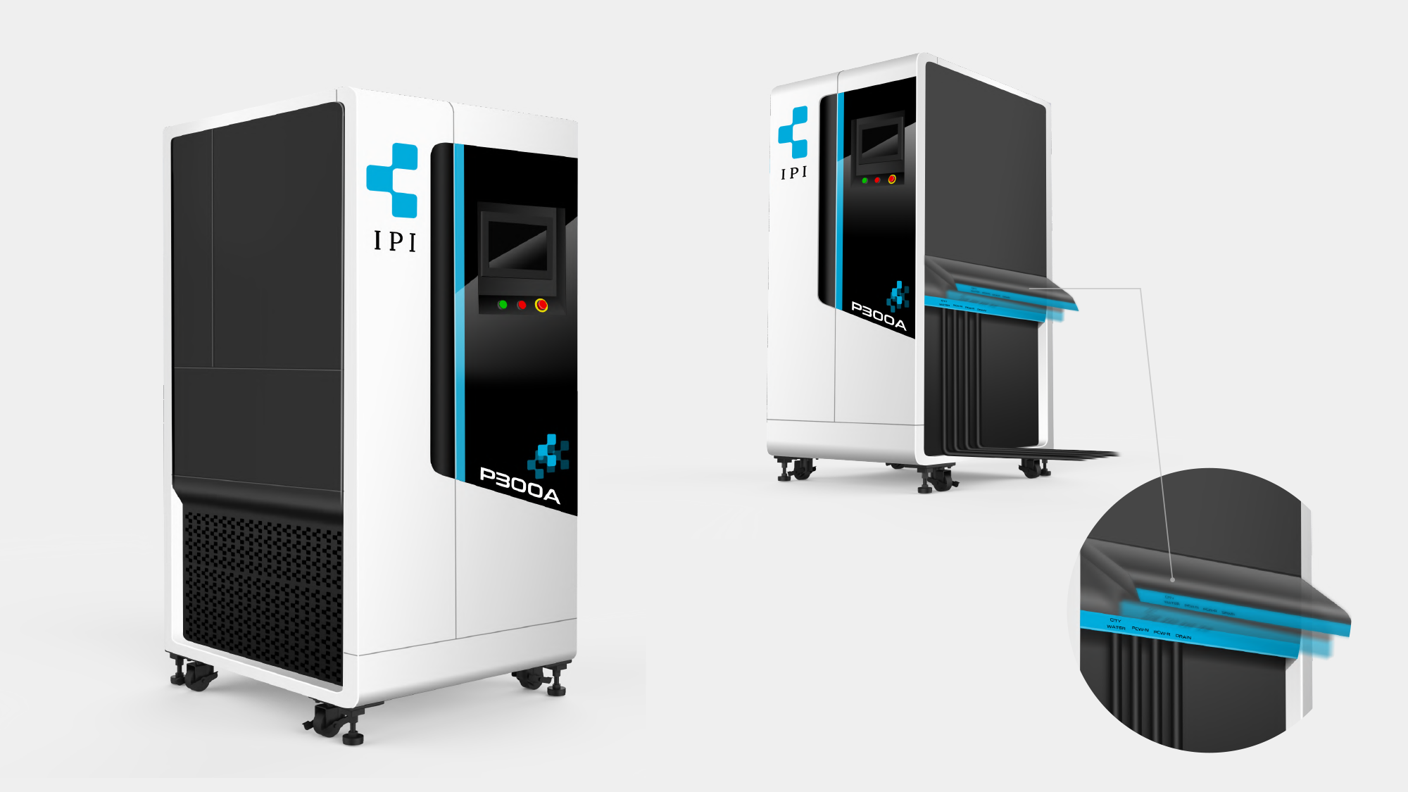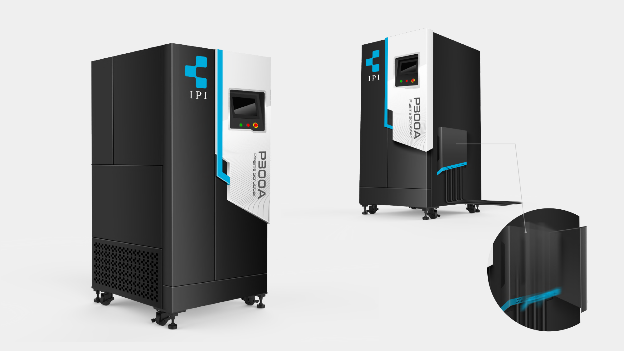在半導體封測與製造環境中,廢氣處理設備不僅需具備極高的化學穩定性,更需因應 24 小時不間斷的維修便利性。形碩設計針對臺禹科機 P300A 進行深度研發,首要任務是改善傳統工業機體因門板懸掛重型電氣箱導致的變形問題。我們透過重新配置結構質心,並導入圓潤整潔的視覺美學,將原本冰冷的廠務設備,提升為具備抗腐蝕防護與優質人機互動的半導體高端儀器。