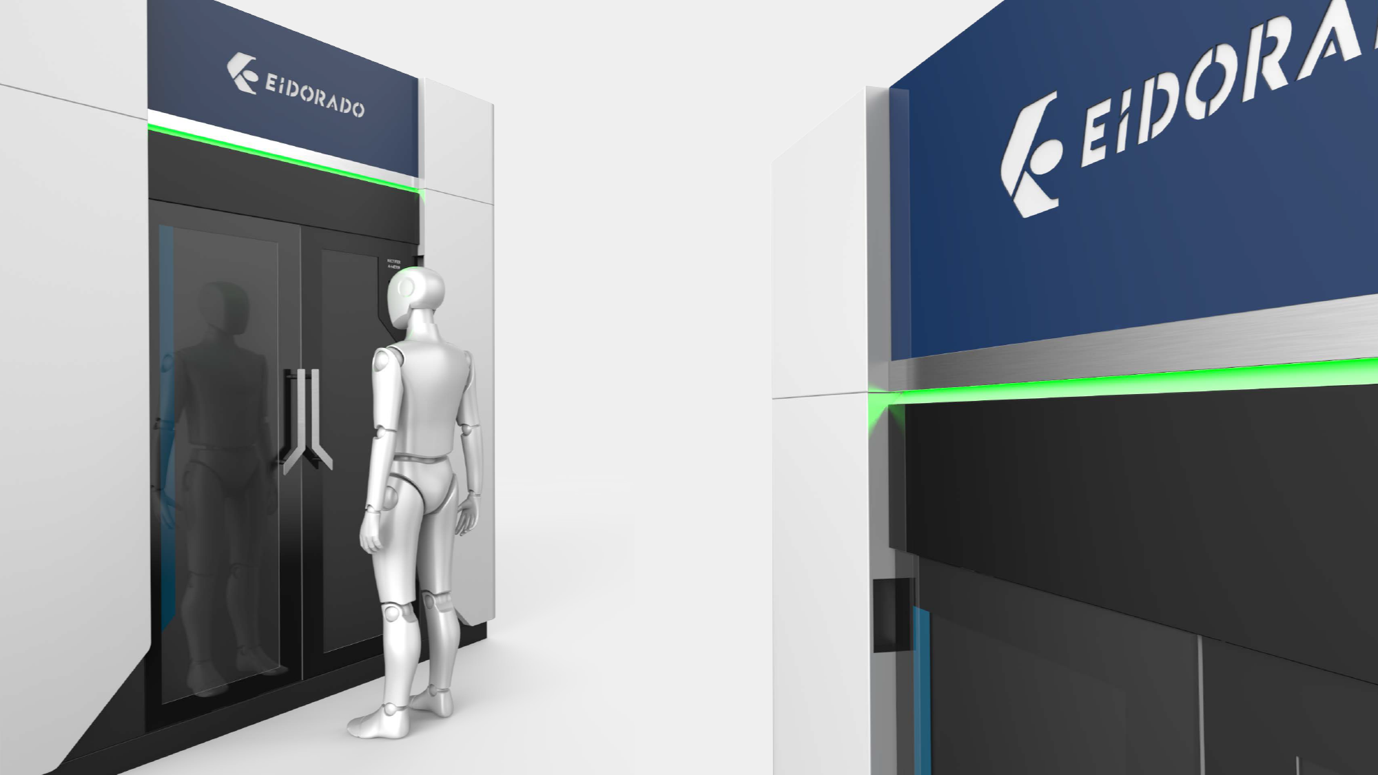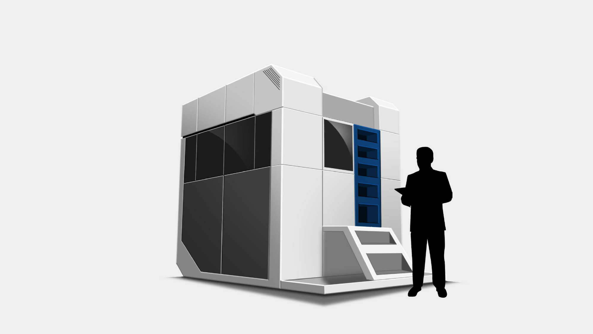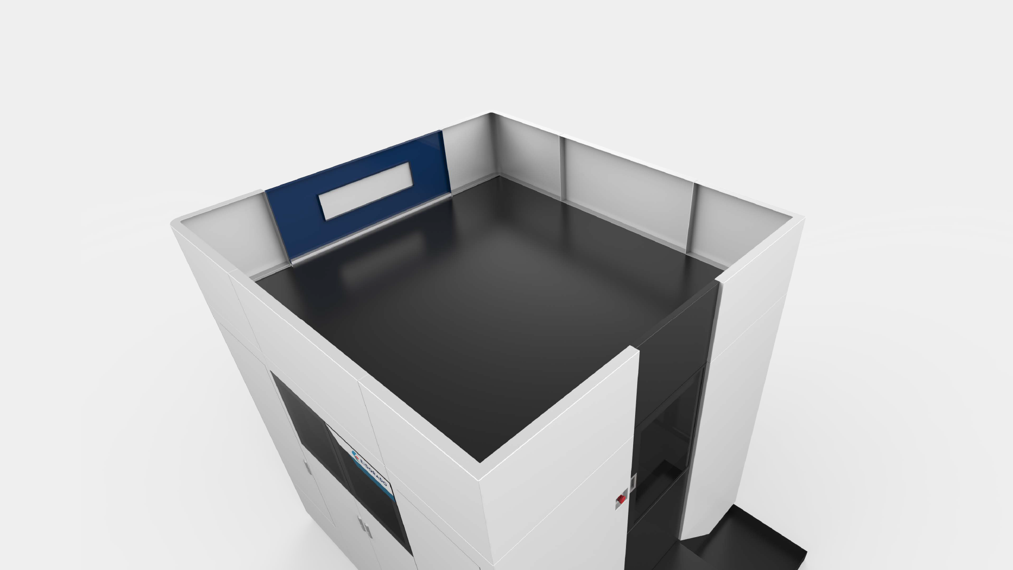 利用分層間隙整合「外掛式滑門軌道」,在增加開門幅度的同時不佔空間,滿足大件上下料與快速維護的需求 。
