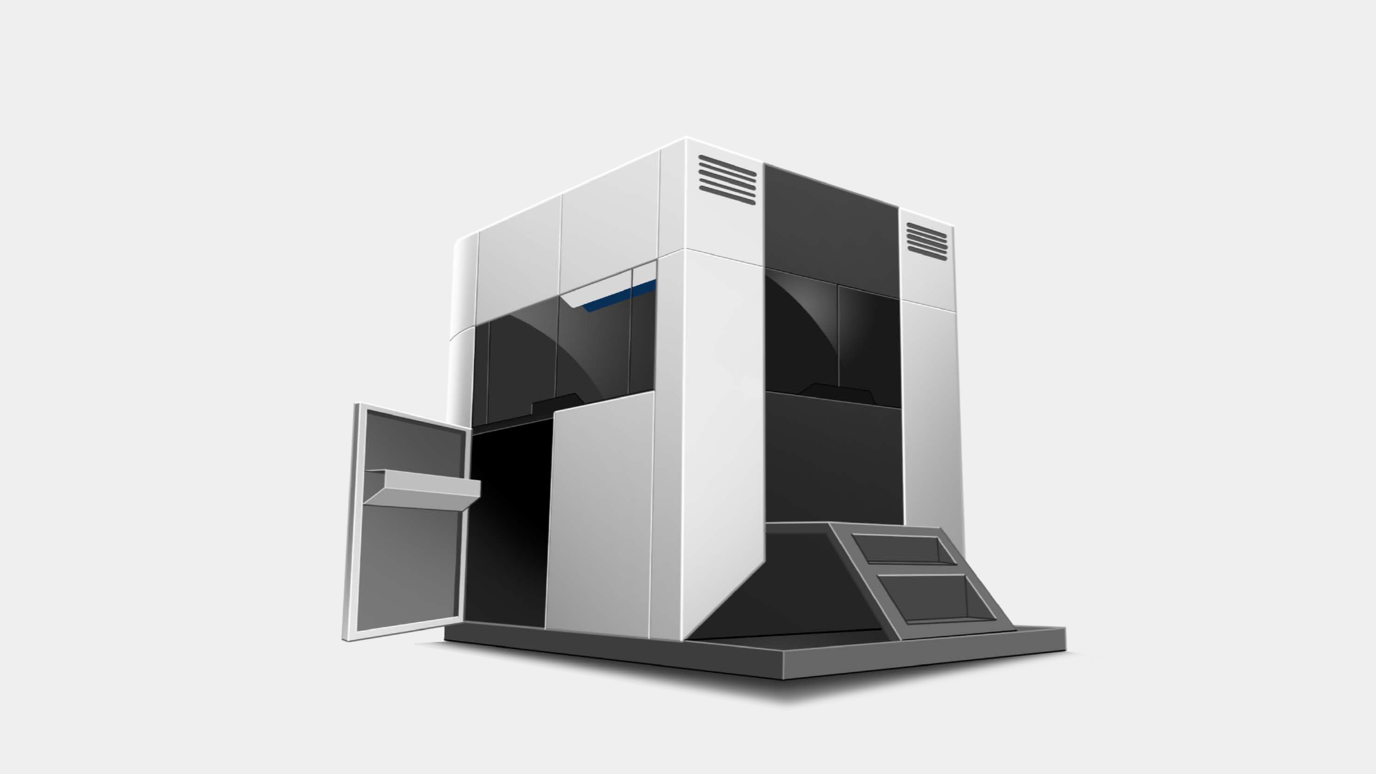 易度 IC 電鍍機的核心價值在於簡化製程並回歸初心。本案提案前言如下: 面對電鍍設備長期存在的「藥水維護繁瑣」與「外掛構件易碰撞」等痛點,形碩設計提出「機能內斂化」的設計策略 。我們透過圓角、斜面與分層等幾何演繹,將大開度維修門、隱藏式把手與整合式工作站轉化為俐落的視覺層次,在符合國際運送規格的同時,實現「易操作、易維護、不簡單」的工業美學 。