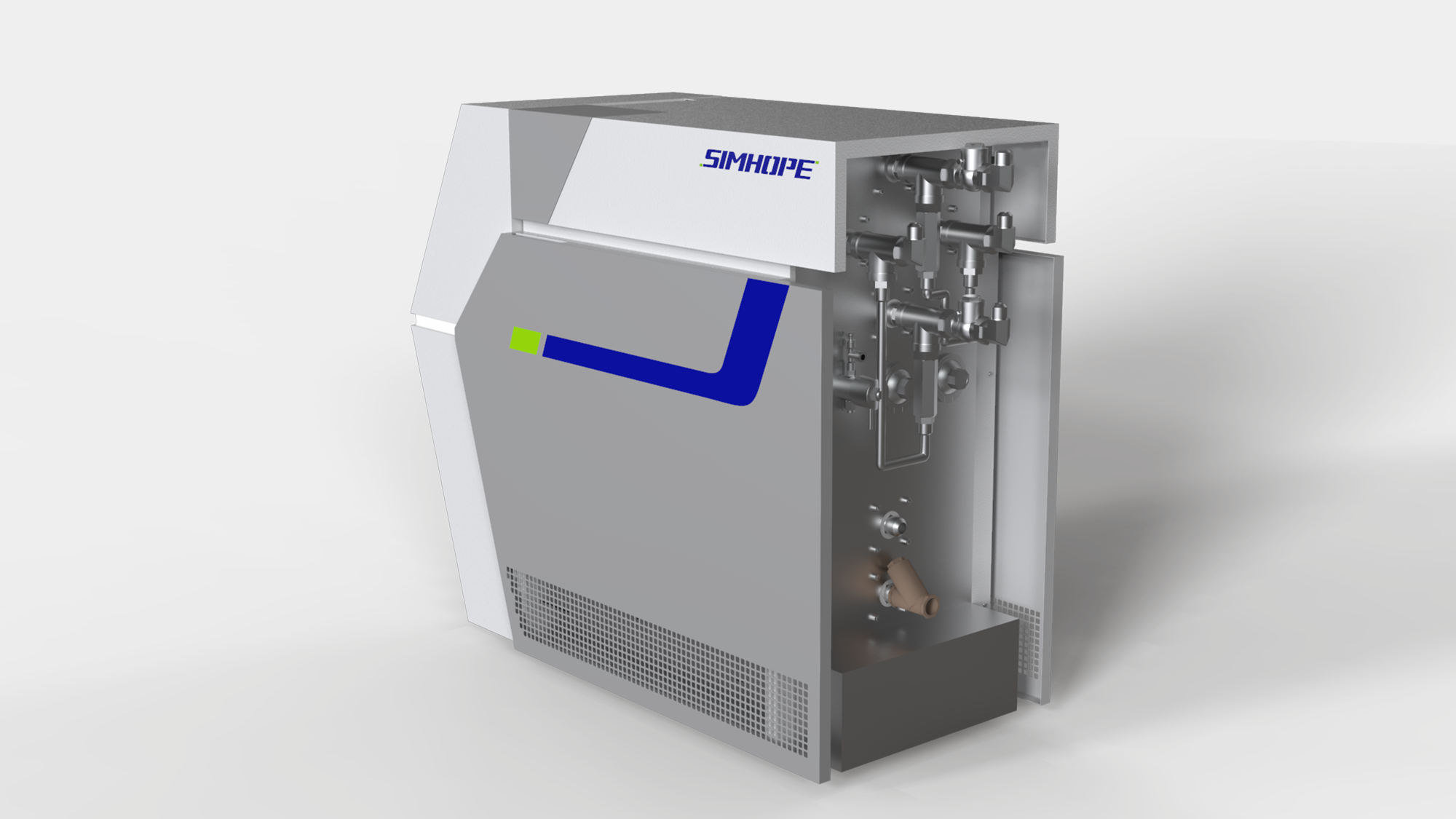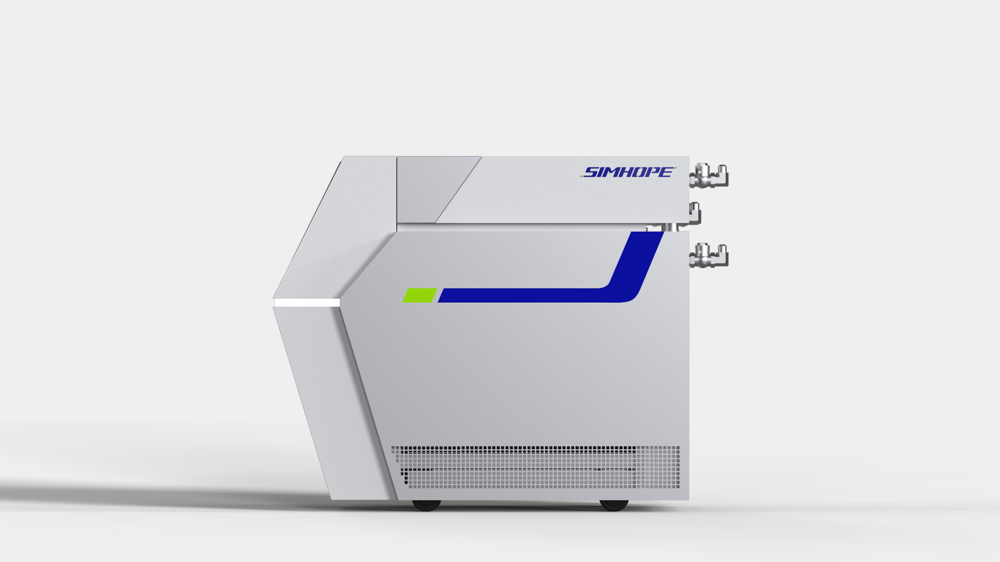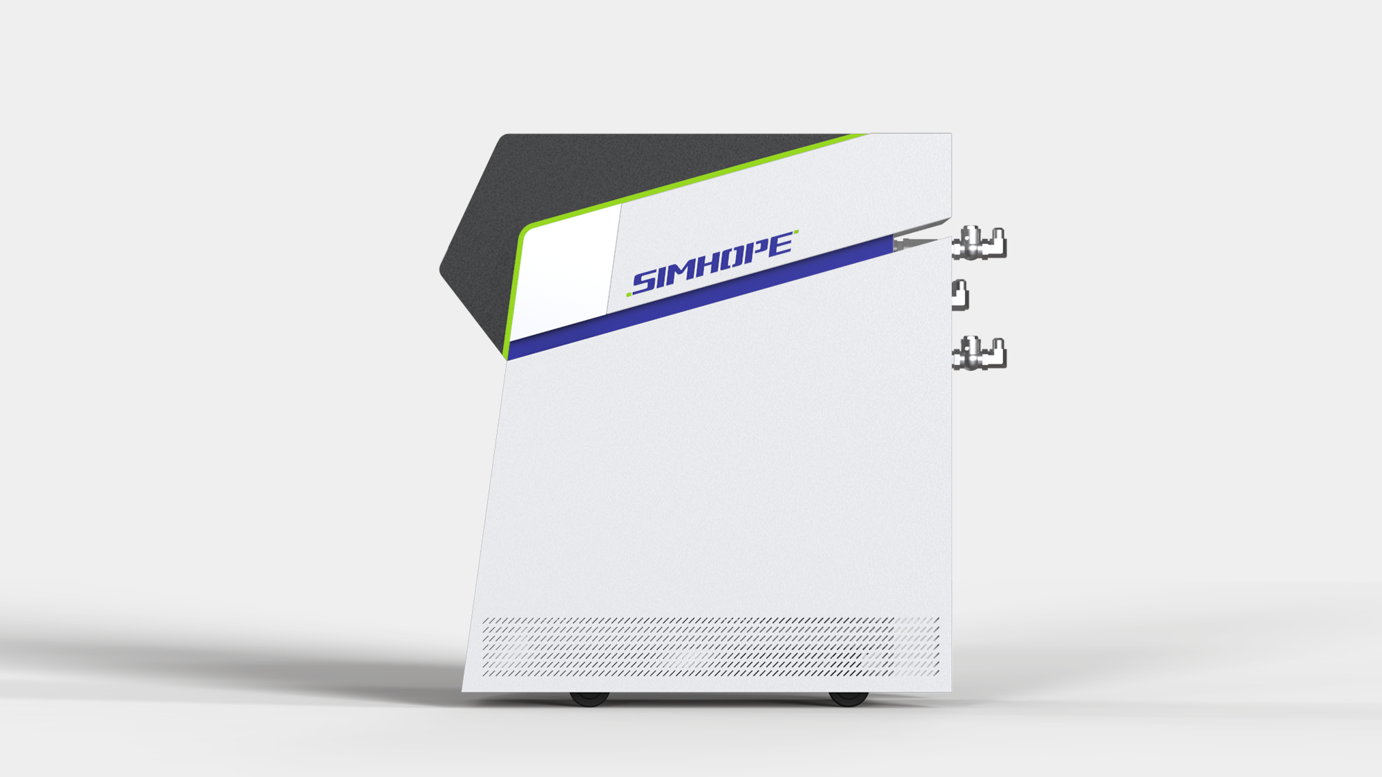 形碩設計在與信鋐(Simhope)的模溫機合作中,成功實踐了「價值高於價格」的核心設計策略 。我們不只是單純優化外觀,更深入研究工業現場的操作痛點,針對原有機種操作面偏低導致的使用疲勞問題進行重構 ,並透過板金延伸設計,巧妙遮蔽了後方原本凸出的複雜管線,有效消除現場碰撞的風險 。這種將工業設計美學與板金工程實務深度整合的作法,讓信鋐的設備在維持「可靠、耐用」品牌定位的同時,亦大幅提升了操作便利性,實現事半功倍的作業目標 。