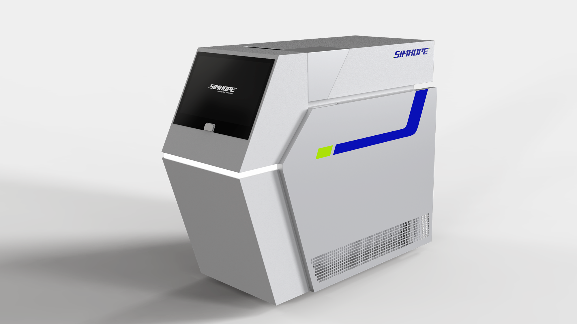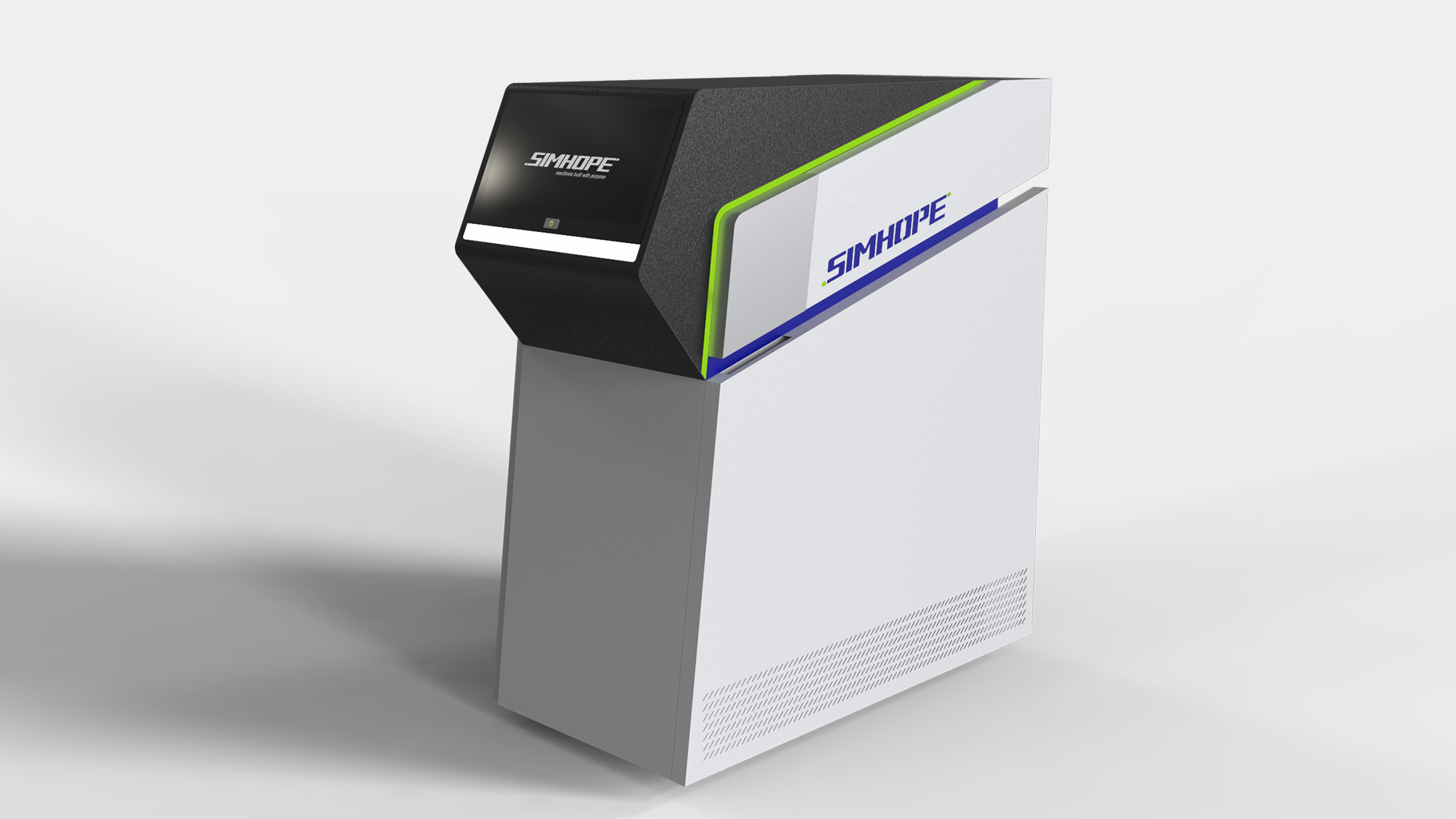 針對信鋐模溫機的視覺重塑,形碩設計導入了「極簡塊體」與「機能性層次」的設計邏輯。在配色規劃上,以低彩度的黑、白、灰為基底展現專業質感,並巧妙注入信鋐標誌性的企業藍與亮綠色點綴,在維持機台穩重感的同時,體現品牌尋求技術革新的核心精神。