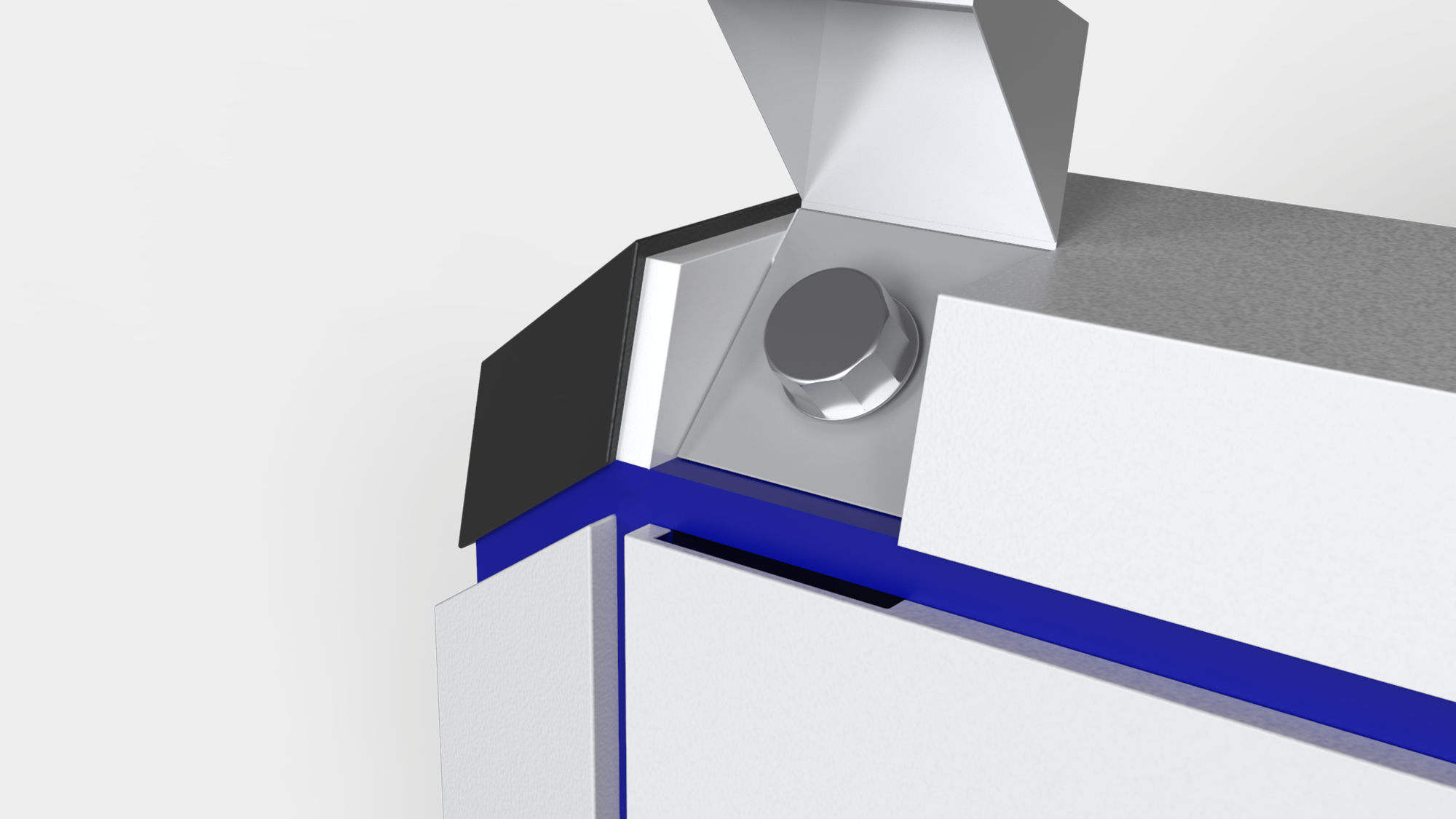以穩重、可靠的意象為核心,透過兩側凸出的造型強化結構的安全感 。設計同時考量操作合理性,利用延伸板金將後方原本凸出的複雜管線徹底隱藏,消除碰撞隱患 。