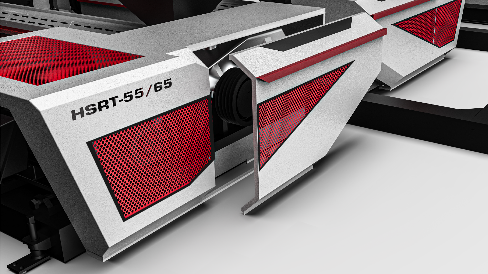 在進入 3D 設計深化階段,形碩設計將草圖構想轉化為可執行的量產方案。我們針對一億機械 HSRT 系列的結構特徵,進行了全面的視覺比例調整與機能整合,確保設備在展現極致科技感的同時,亦能符合工廠實務的維修便利性與操作安全。