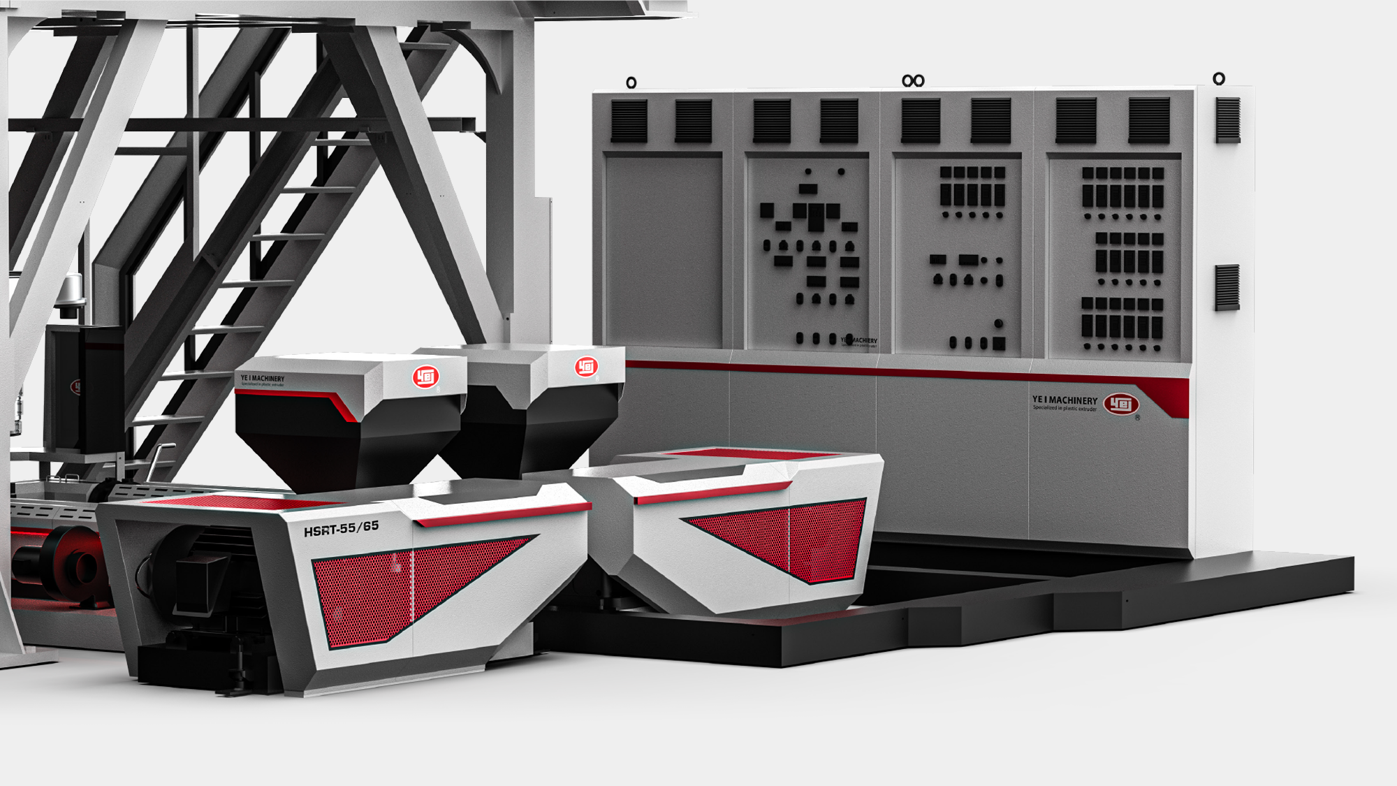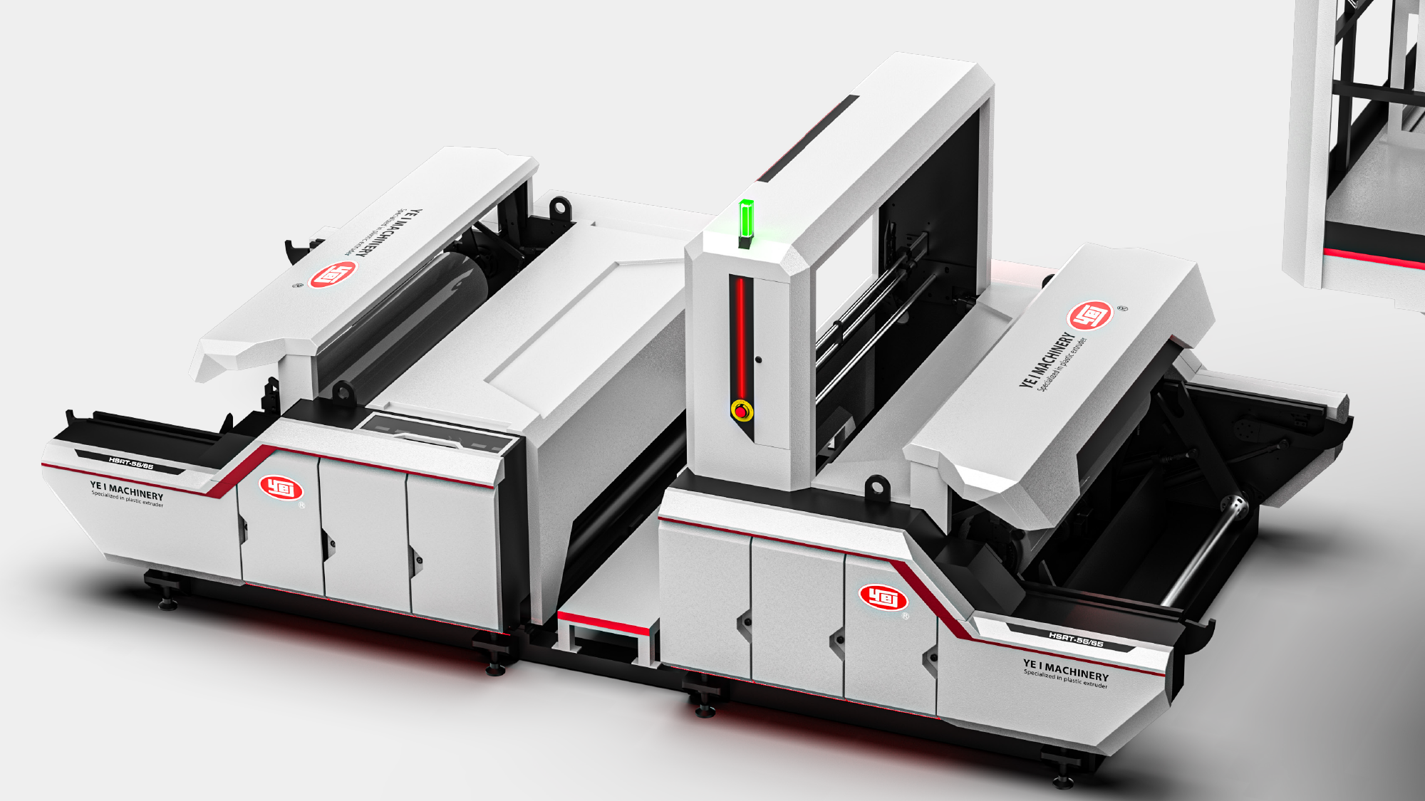 本專案不僅是一次設備外觀的翻新,更是將一億機械長期深耕的「節能減碳」品牌靈魂,透過形碩設計的視覺語彙進行實體化演繹 。在 HSRT 系列的開發過程中,我們挑戰了傳統吹膜設備沉重、生硬的刻板印象,改以極具動能感的幾何鈑金與性能視覺化燈態,重新定義了高階機種應有的國際姿態,這不僅是吹膜機造型的進化,更是協助企業在循環經濟的浪潮中,成功建構出不可替代的品牌核心識別力,在國際舞台上昂首邁向綠色科技的新紀元。