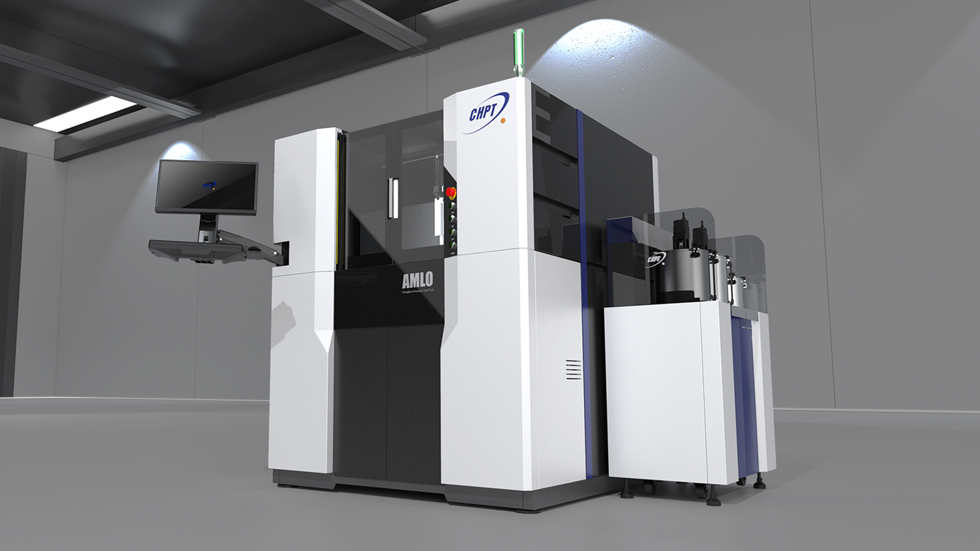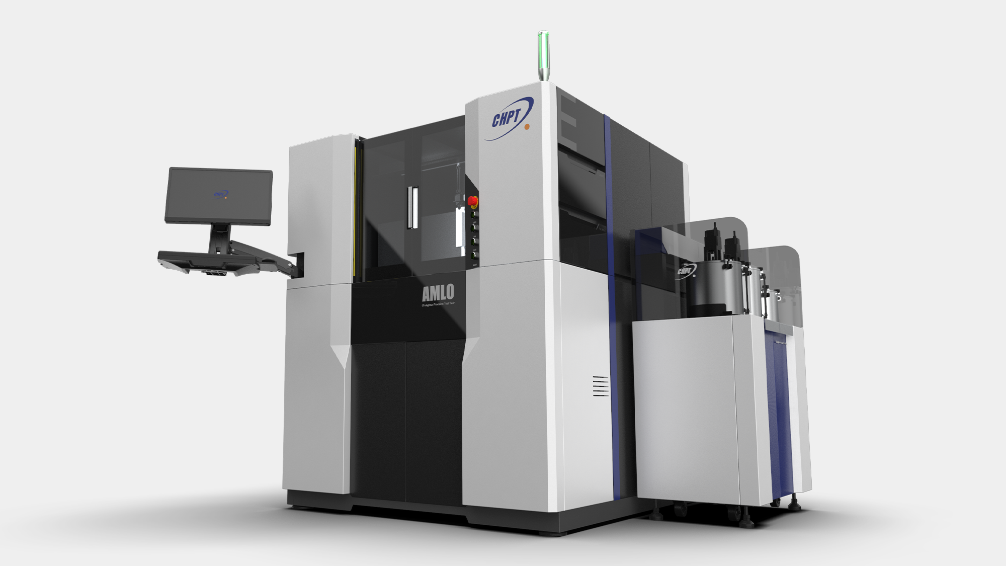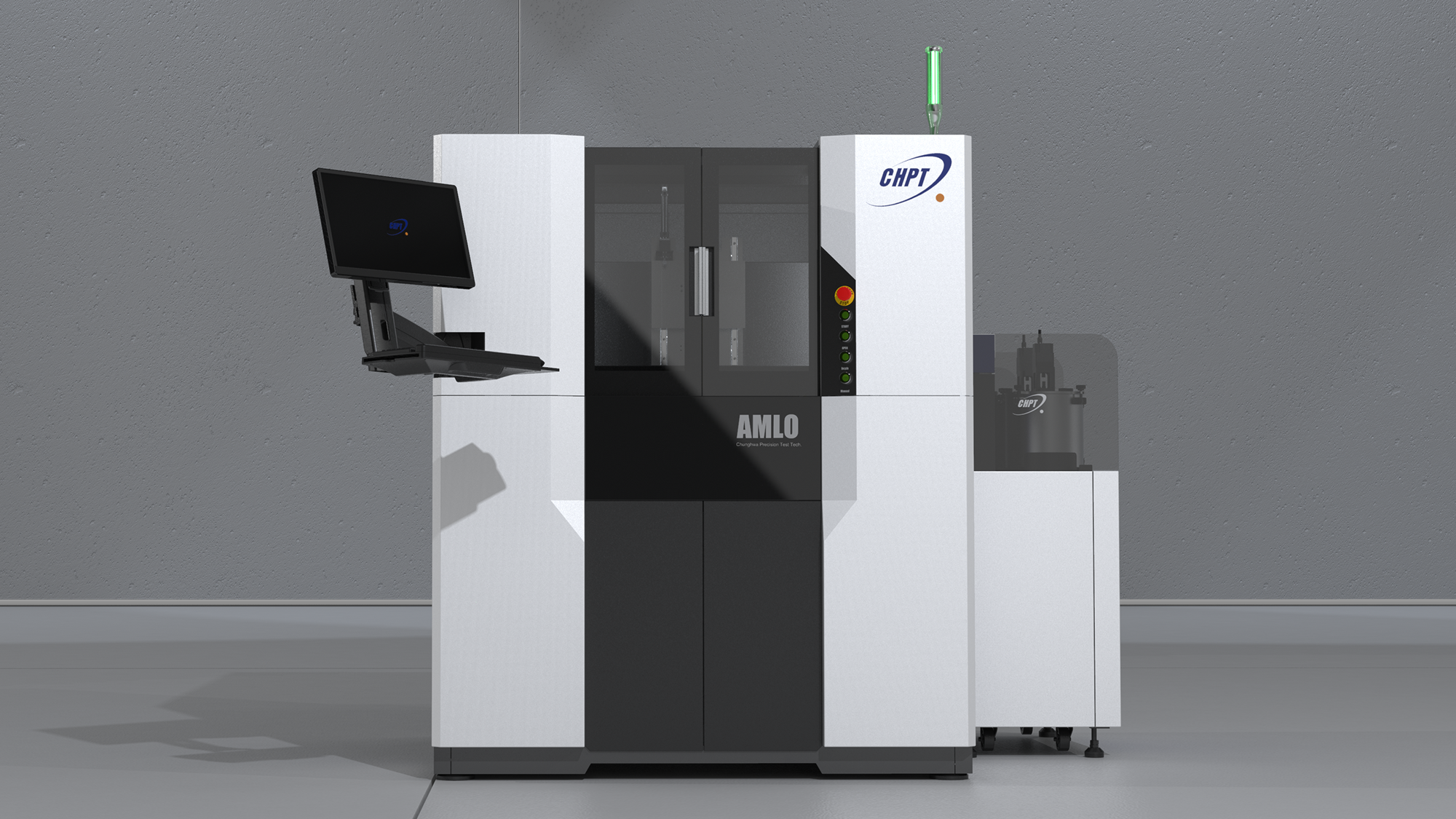 在中華精測 AMLO 精密研磨機的 3D 階段,形碩設計將設計重心由視覺概念轉向「量產可行性」與「操作效率」的深度結合。透過局部幾何切消與層次感設計,我們將複雜的研磨設備轉化為俐落的專業產品。此階段關鍵在於解決訪談中提到的維修空間限制與操作疲勞痛點,並透過模組化板金結構確保量產穩定性,同時強化「AMLO」高階系列的品牌識別。