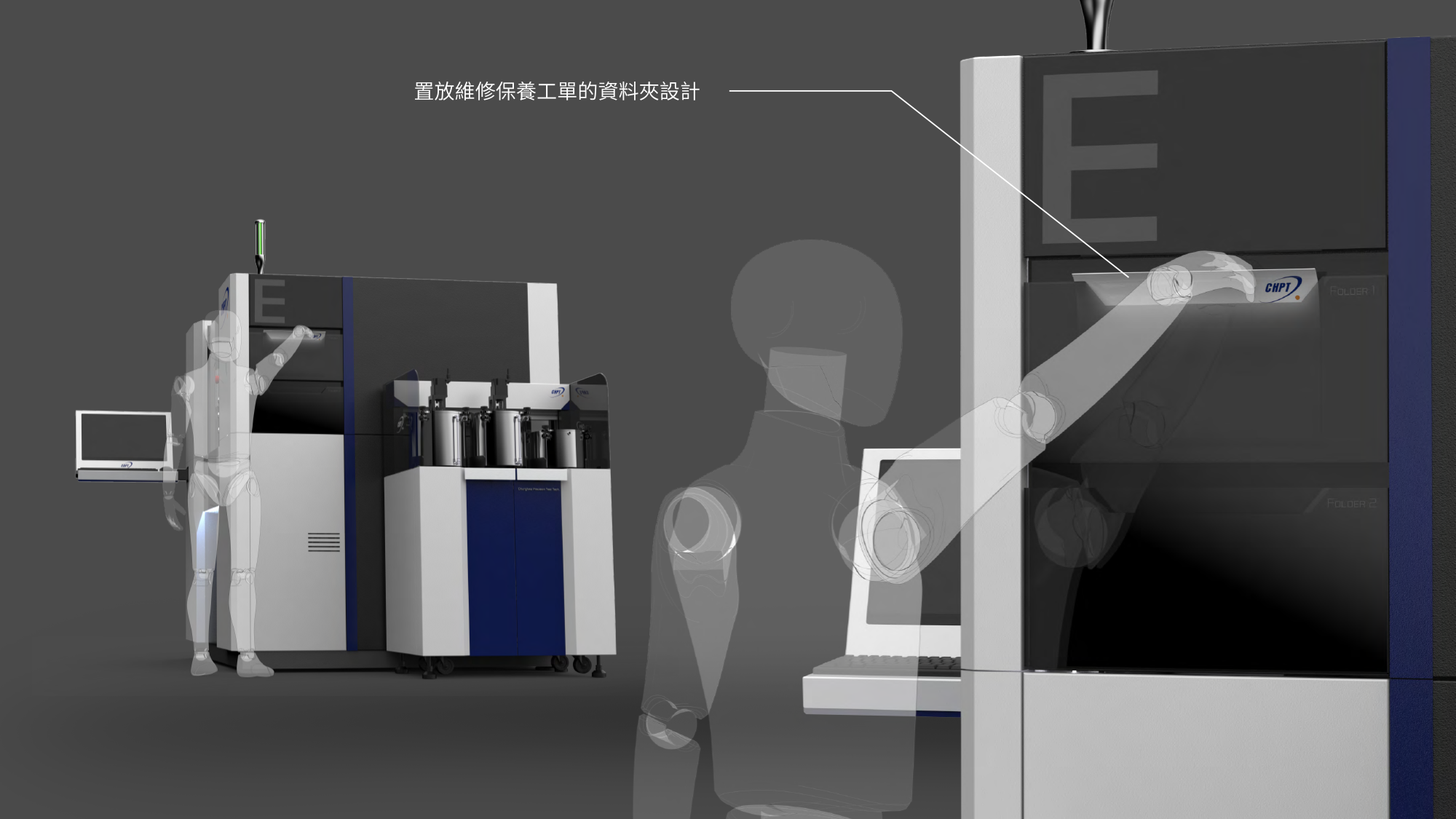 機身右側前方設計維修保養工單專屬資料夾收納位,將行政管理與機台運轉流程完美整合。