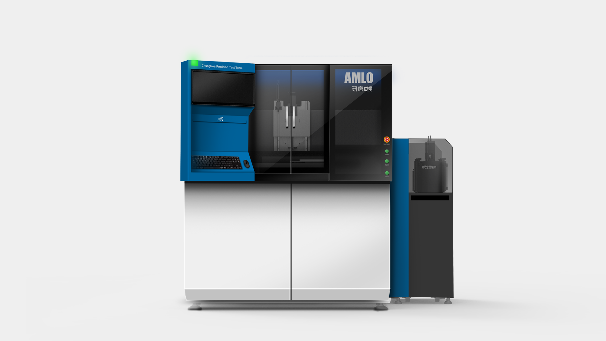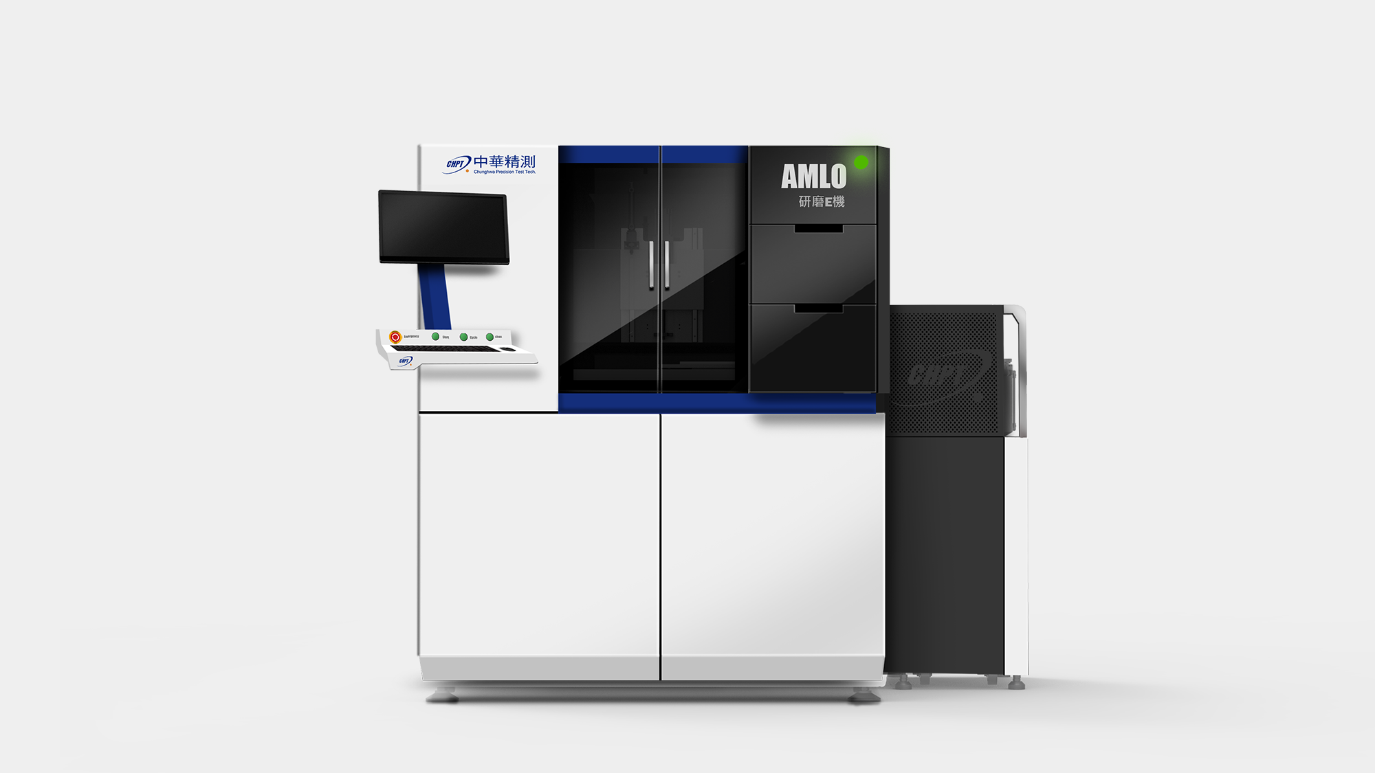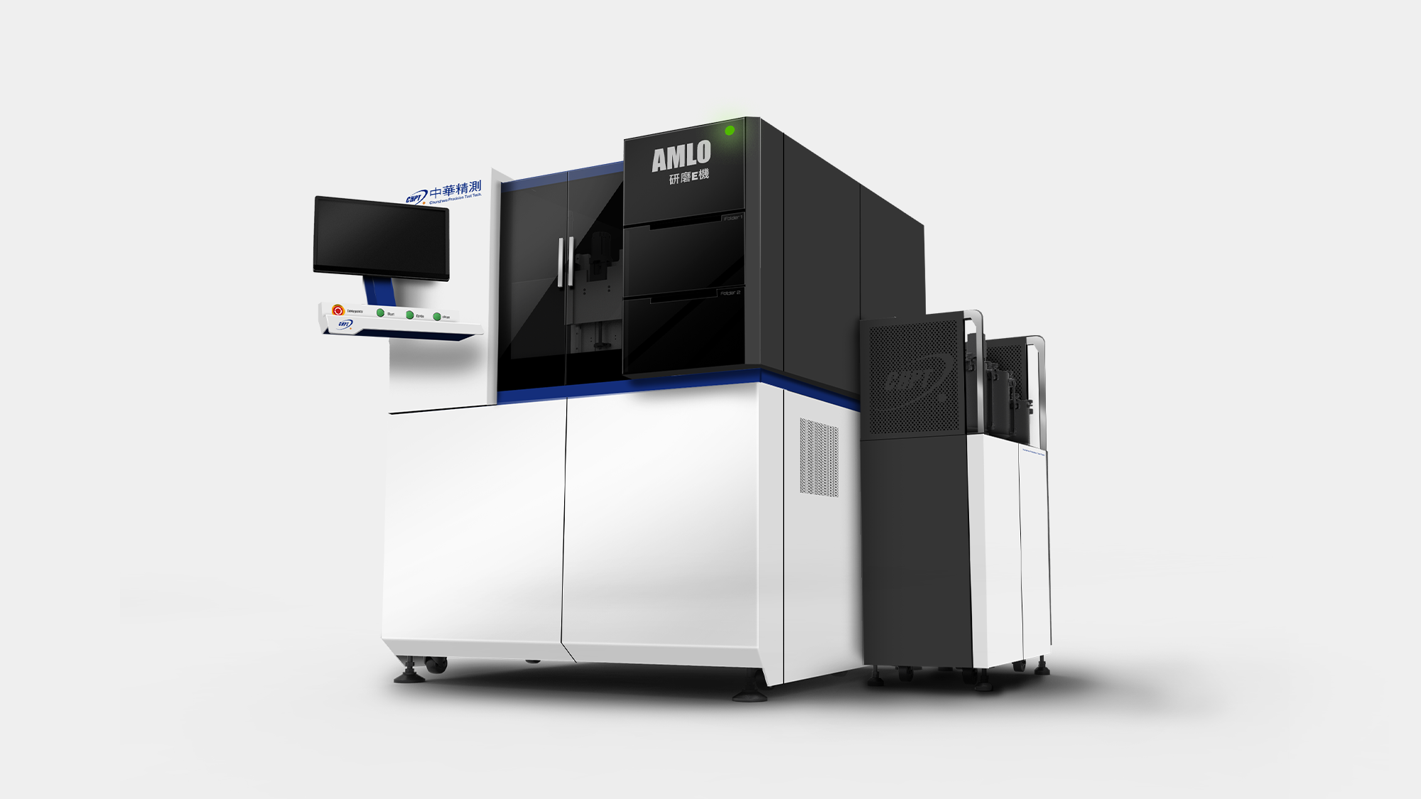 形碩設計協助中華精測 AMLO 精密研磨機,將「效率與精準」的品牌精神轉化為具備國際競爭力的工業美學。針對高階研磨製程,我們改善了操作疲勞問題,優化正面鍵盤螢幕配置,並導入腳踢空間與安全光柵以根除碰撞與夾手風險。視覺採用潔淨白底搭配點綴色帶,結合底座、花崗岩至板金的精密組裝工程,在維修動線與操作安全性間取得平衡,成功定義半導體測試設備的高端價值。