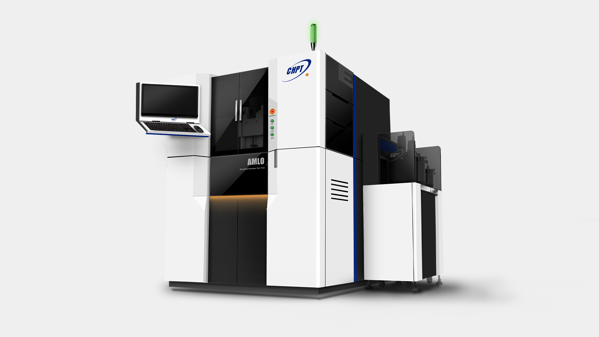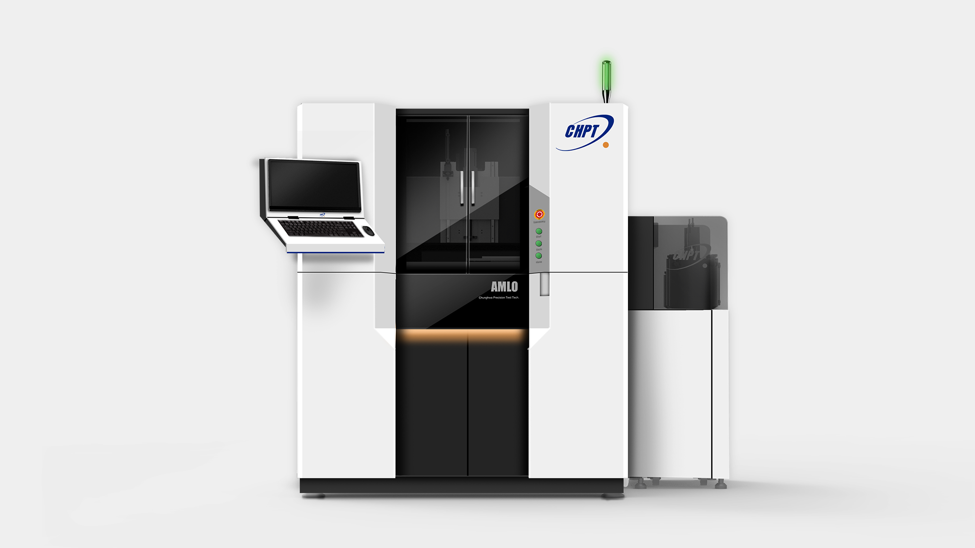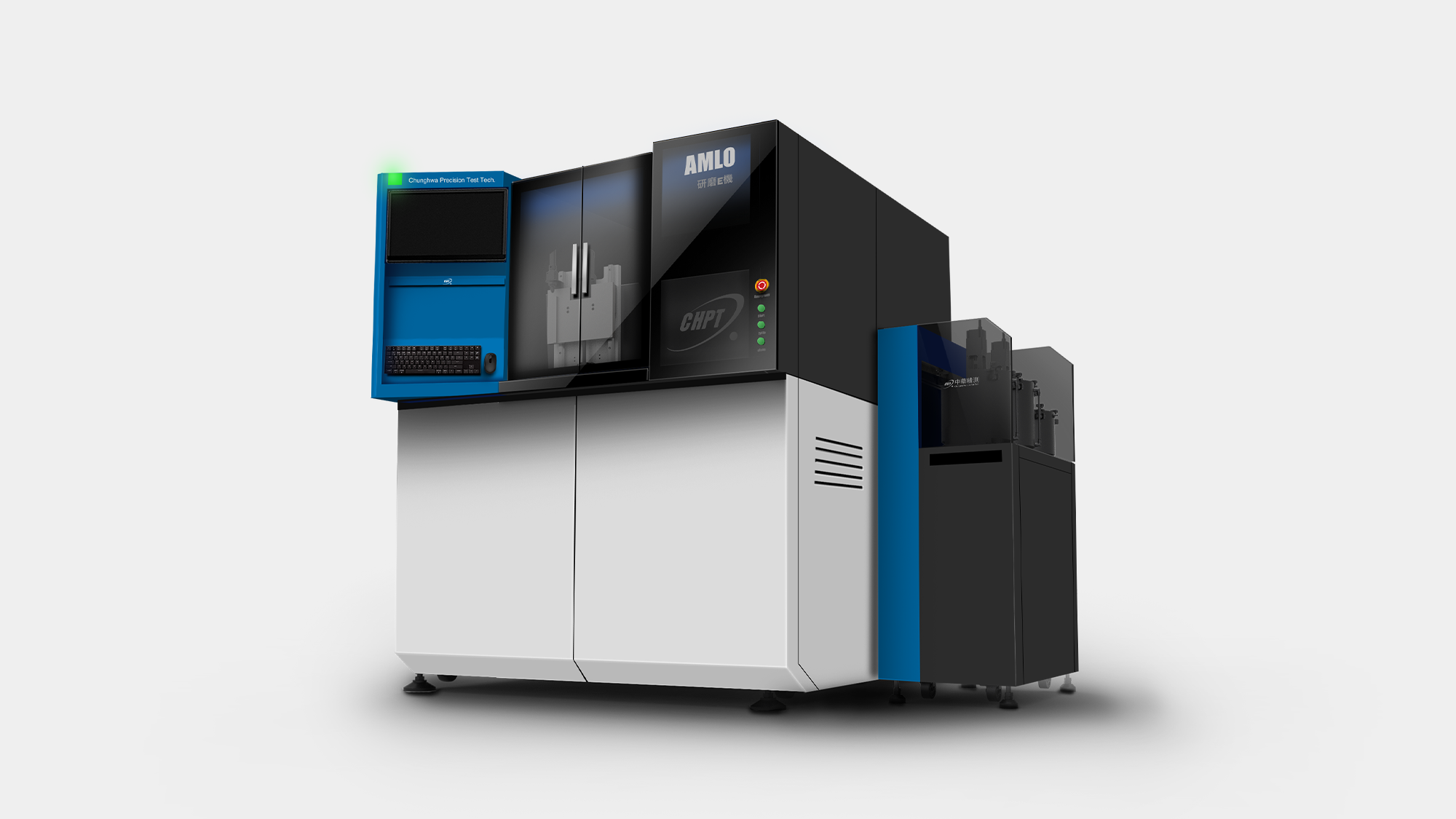 形碩設計協助中華精測 AMLO 精密研磨機,將「效率與精準」的品牌精神轉化為具備國際競爭力的工業美學。針對高階研磨製程,我們改善了操作疲勞問題,優化正面鍵盤螢幕配置,並導入腳踢空間與安全光柵以根除碰撞與夾手風險。視覺採用潔淨白底搭配點綴色帶,結合底座、花崗岩至板金的精密組裝工程,在維修動線與操作安全性間取得平衡,成功定義半導體測試設備的高端價值。