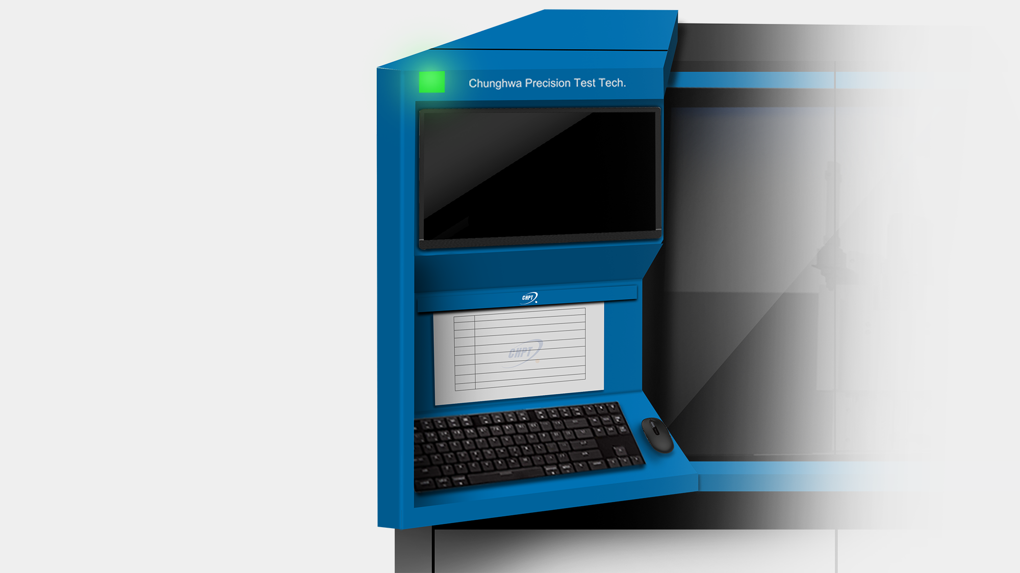 此外,透過俐落且精確的幾何線條勾勒機身細節,完美呼應中華精測「效率、精準」的企業文化,將硬體設備轉化為企業精神的具象化呈現 。
