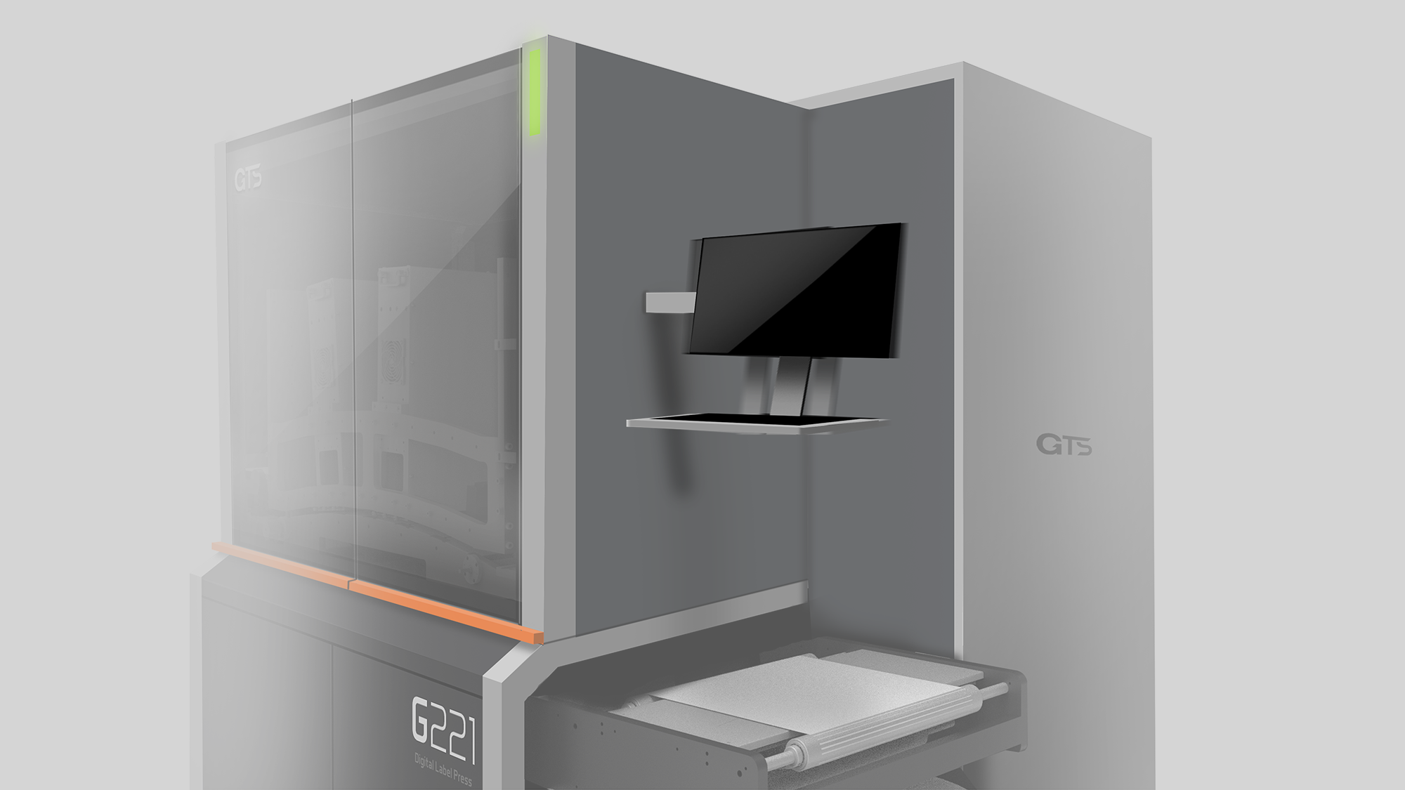 在數位印刷競爭激烈的市場中,健泓科技 GTS 展現了勇於挑戰傳統的精神。本專案的設計目標在於建立足以抗衡歐洲機種的簡潔美學,同時解決現場操作的三大痛點:鍵盤高度適應性、狹小的維修動線,以及設備銳角帶來的碰撞風險 。