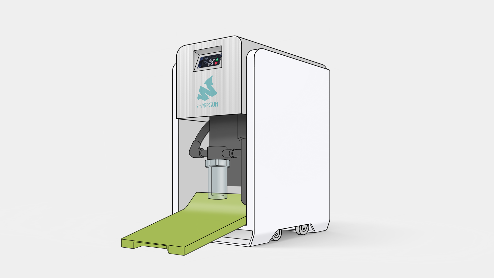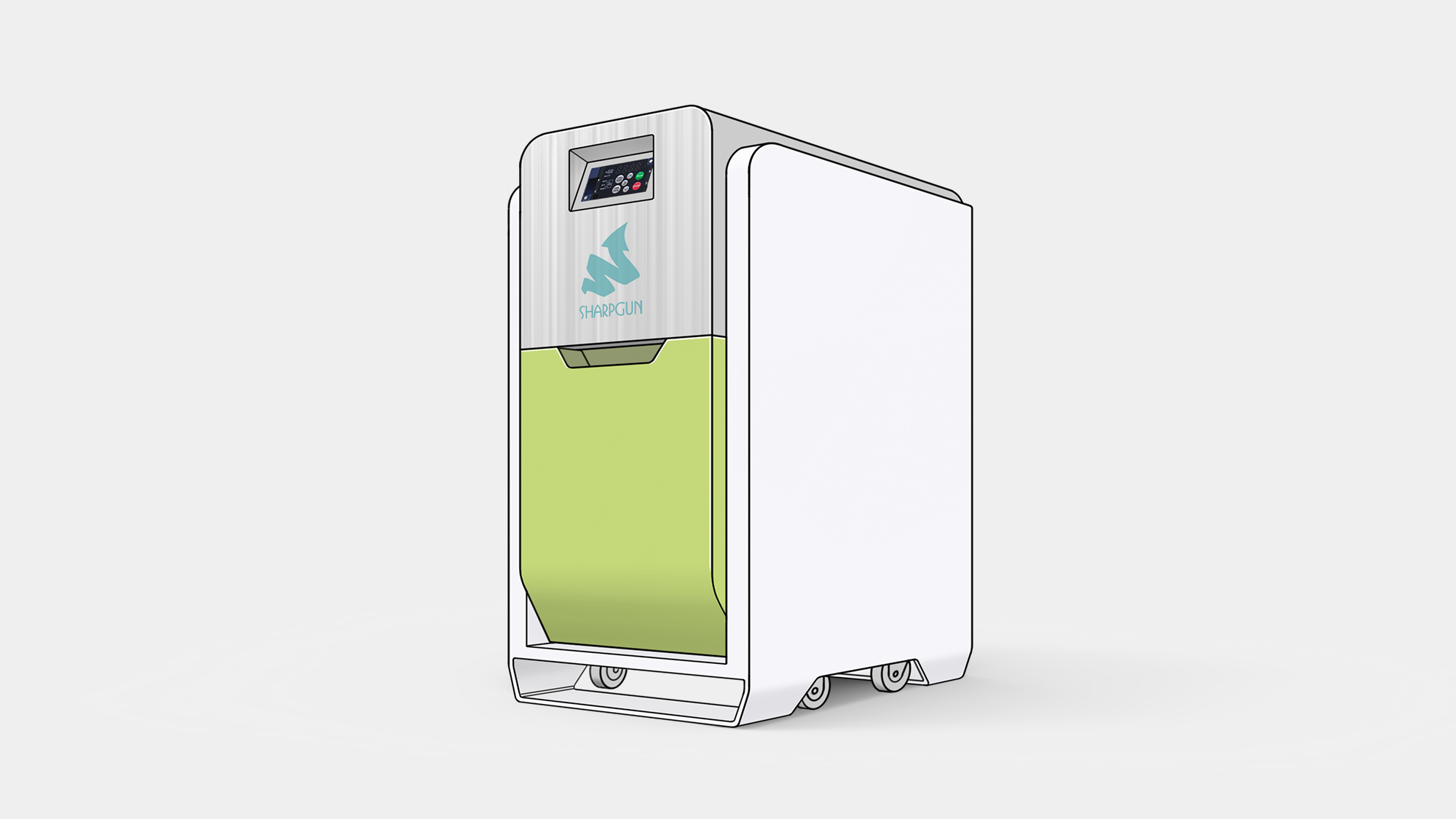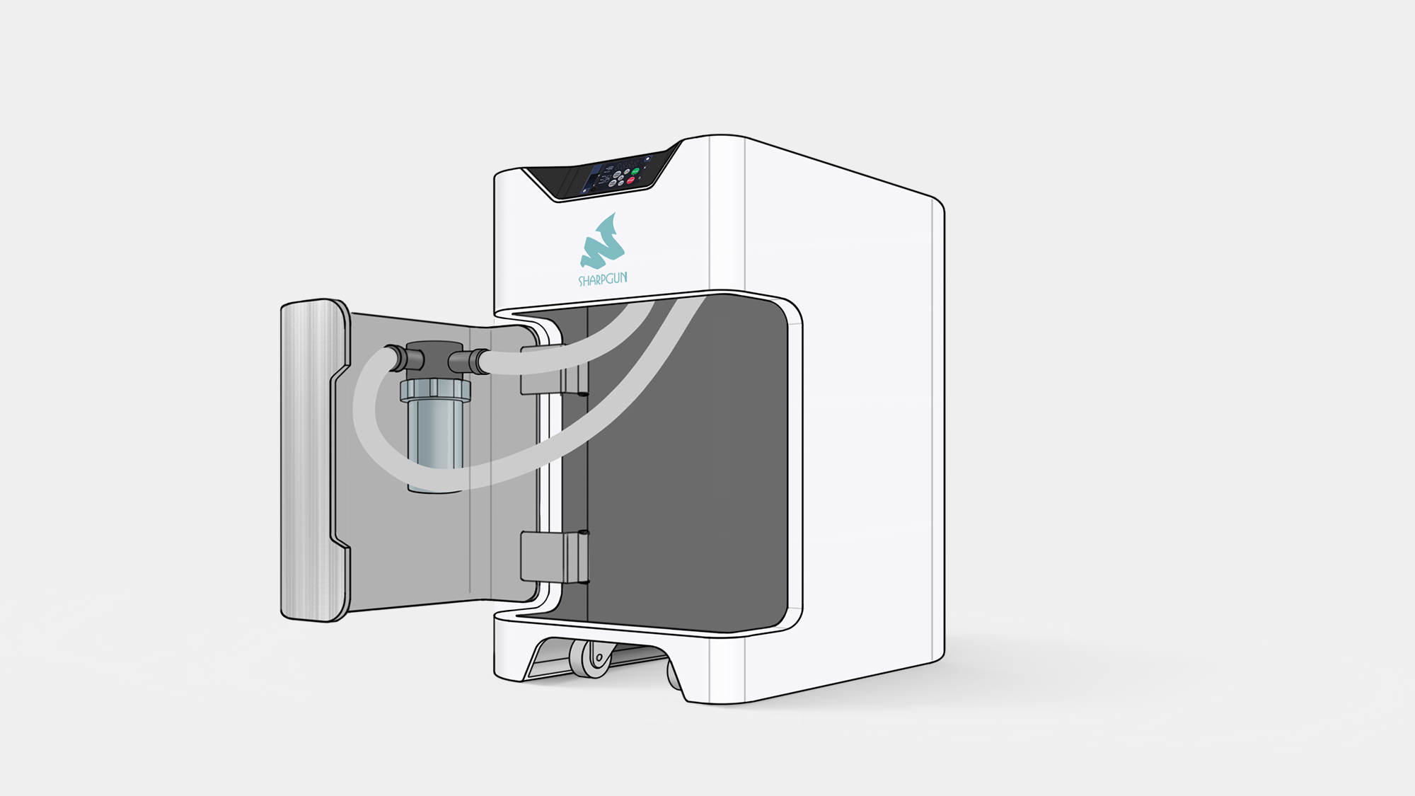 在元大牙科吸唾機的 3D 階段,形碩設計將研發重心鎖定於診間維修效率的提升與電子元件的模組化整合。我們針對牙科機房狹小且潮濕的環境特性,重新定義了板金門板的開啟邏輯,並透過一體化按鍵設計簡化組裝流程,確保每年 300 台的量產計畫能達到最高的一致性與品質穩定度 。